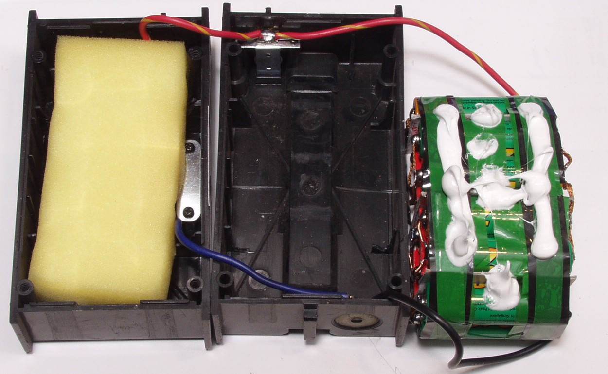 | B. さらに容量UP。 画像をクリックすると、大きく(横幅2050ドット)表示されます。 B1. スペースが有るので、2本追加して10.8Vにする、但し純正の充電器は使用出来ない |