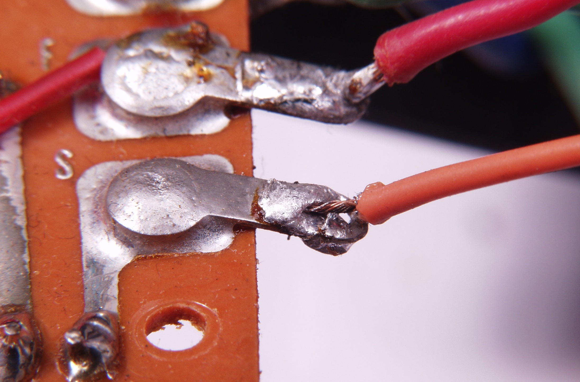 | C3. 3台目PW−200の修理。 画像をクリックすると、大きく(横幅2050ドット)表示されます。 YAHOOオークションで購入、ユーザーが修理に失敗した物 TR(トランジスター)個、電解コンデンサー4個、抵抗2個交換する C31. 配線は外されている |