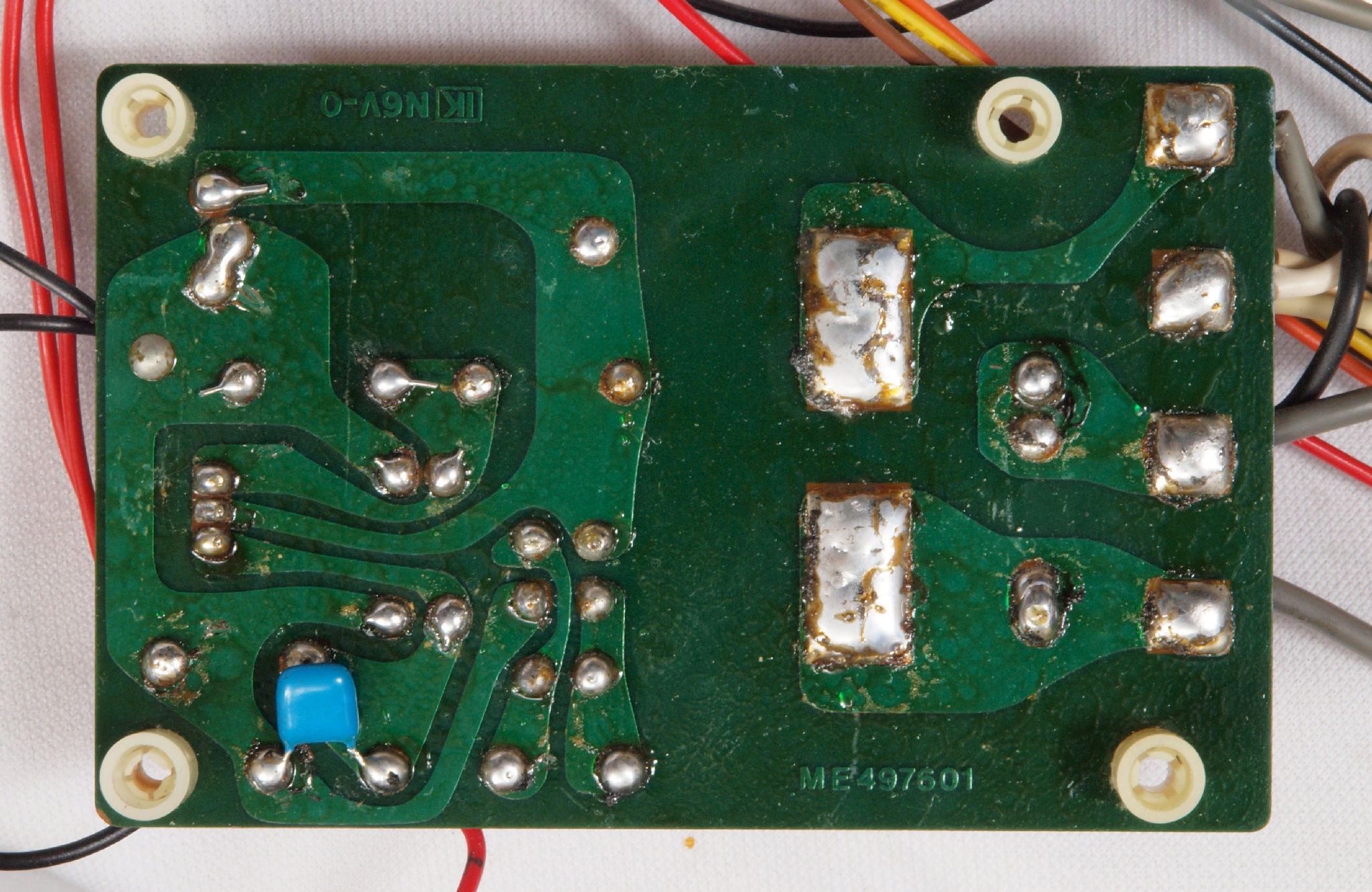 | C35. 完成ヒューズ・定電圧基板裏。 余分なフラックスを落として、コート液を塗る。 | ||||||||||||||||||||||||||||||