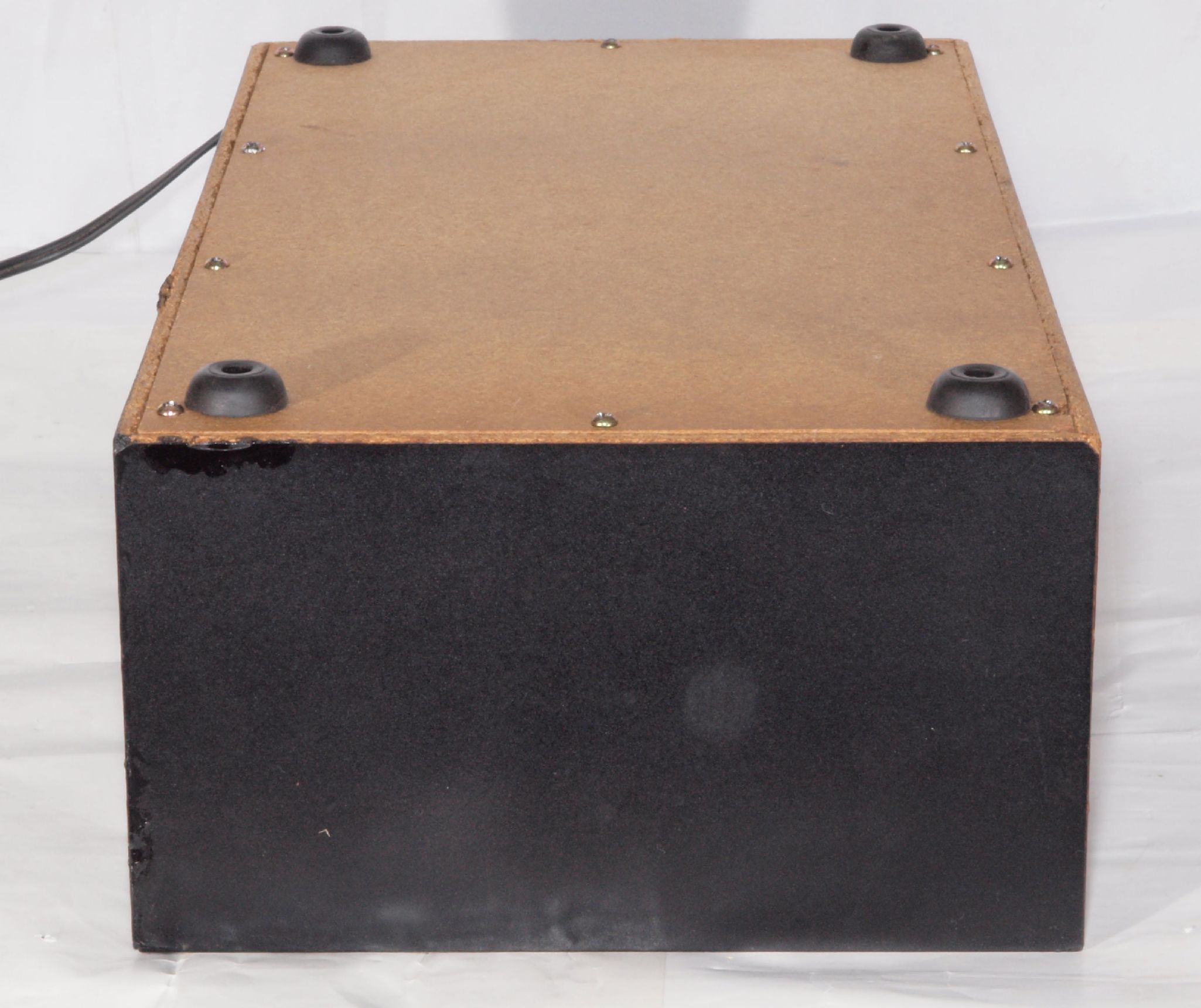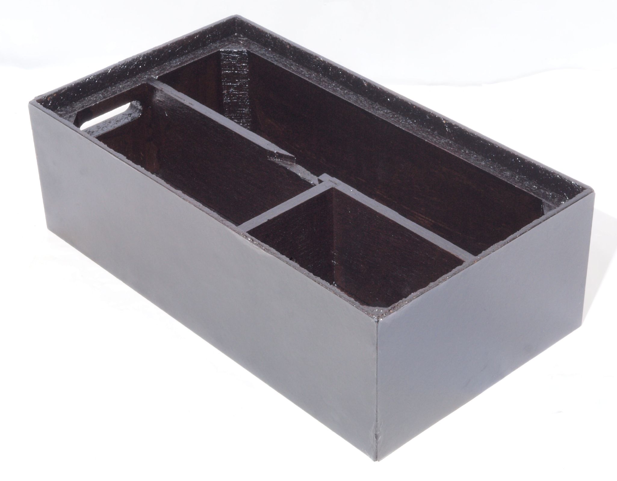 | C46. 修理後 接着材が劣化した木箱、下前右から見る。 さらに、塗装する。 |