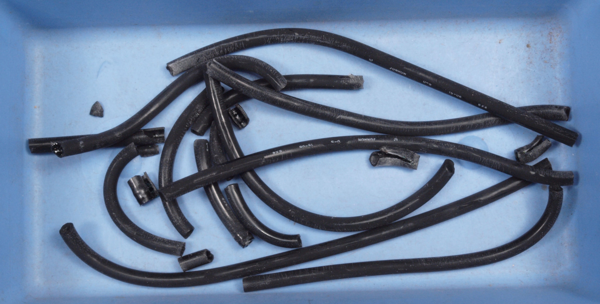 A25. RV−1090点検中 ポンプからの配管が経年硬化しているので交換する。
