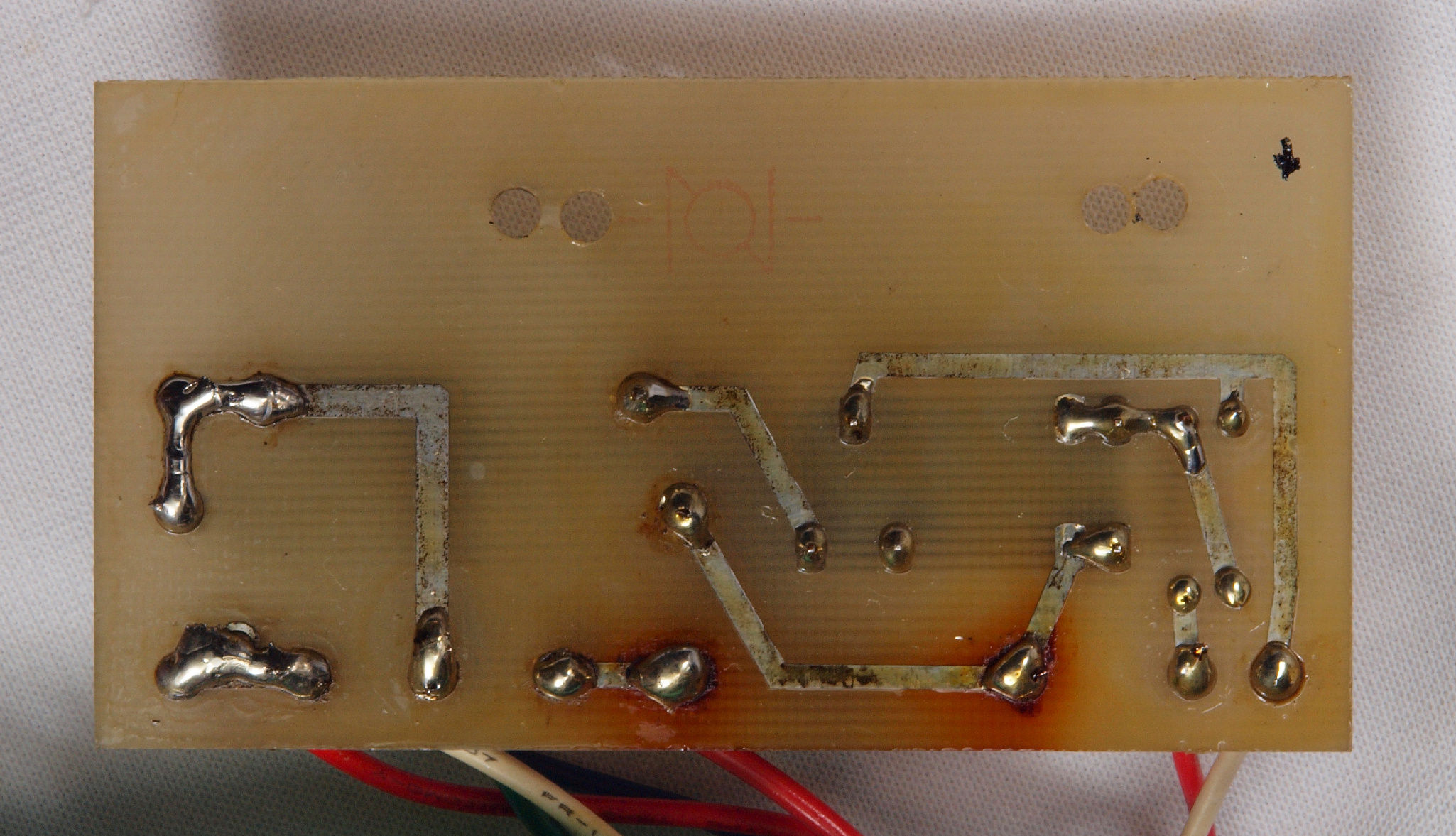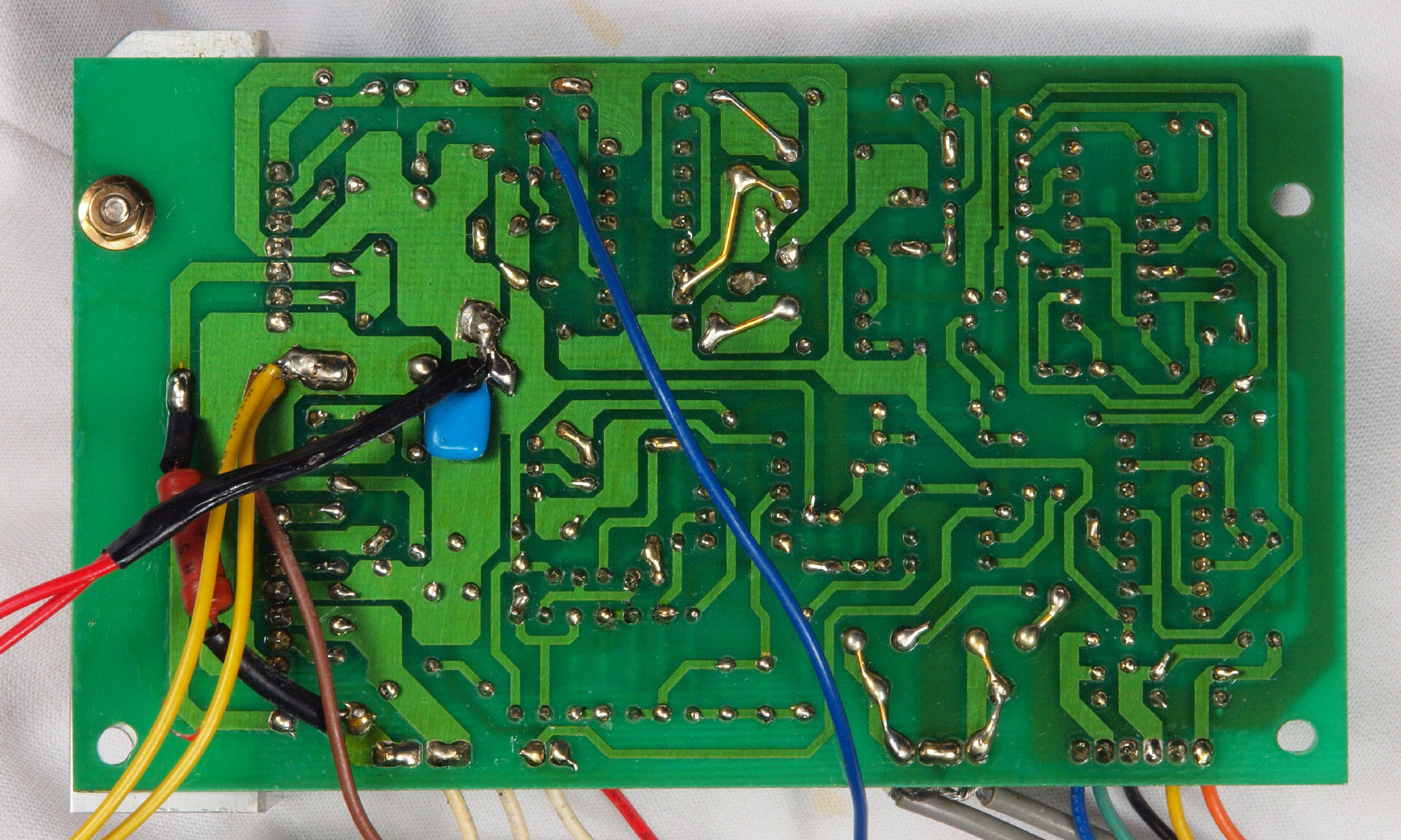 | C35. 完成 モーター33/45回転切換基板裏。 不要なフラックスを取り洗浄し、コート液を塗布。 |