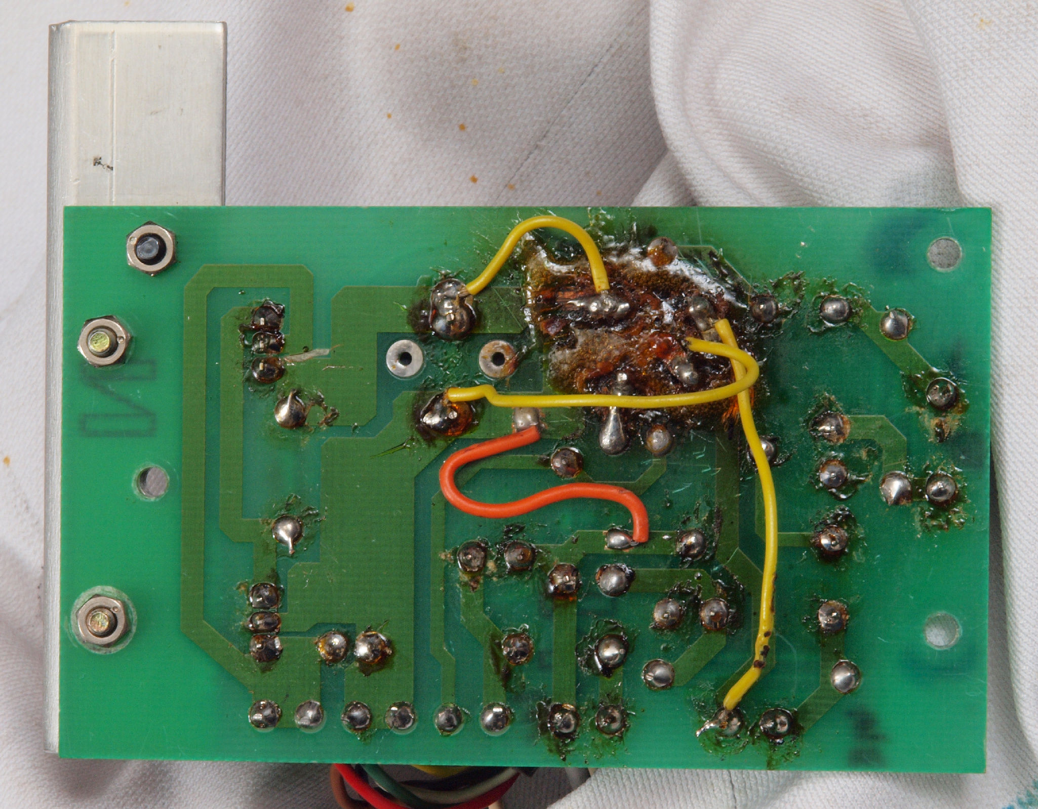 | C. 修理状況。 画像をクリックすると、大きく(横幅2050ドット)表示されます。 C11. 修理前 電源部整流基板 |