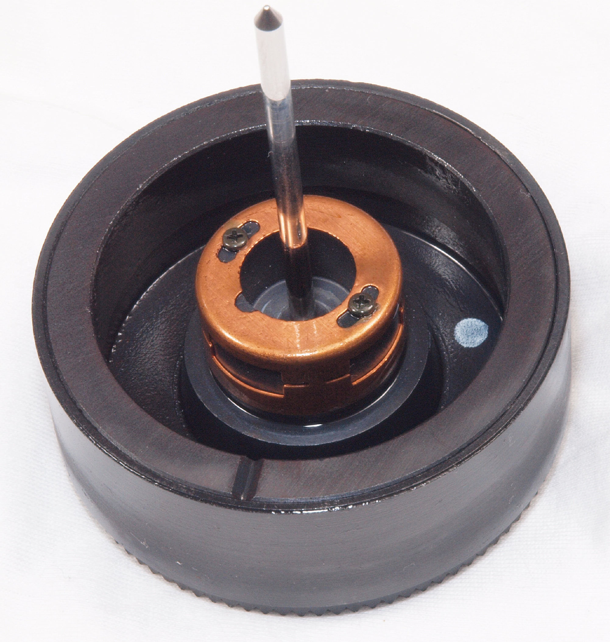 C61. 修理中、モータ回転子上側軸受を上から見る。 油分が無し。