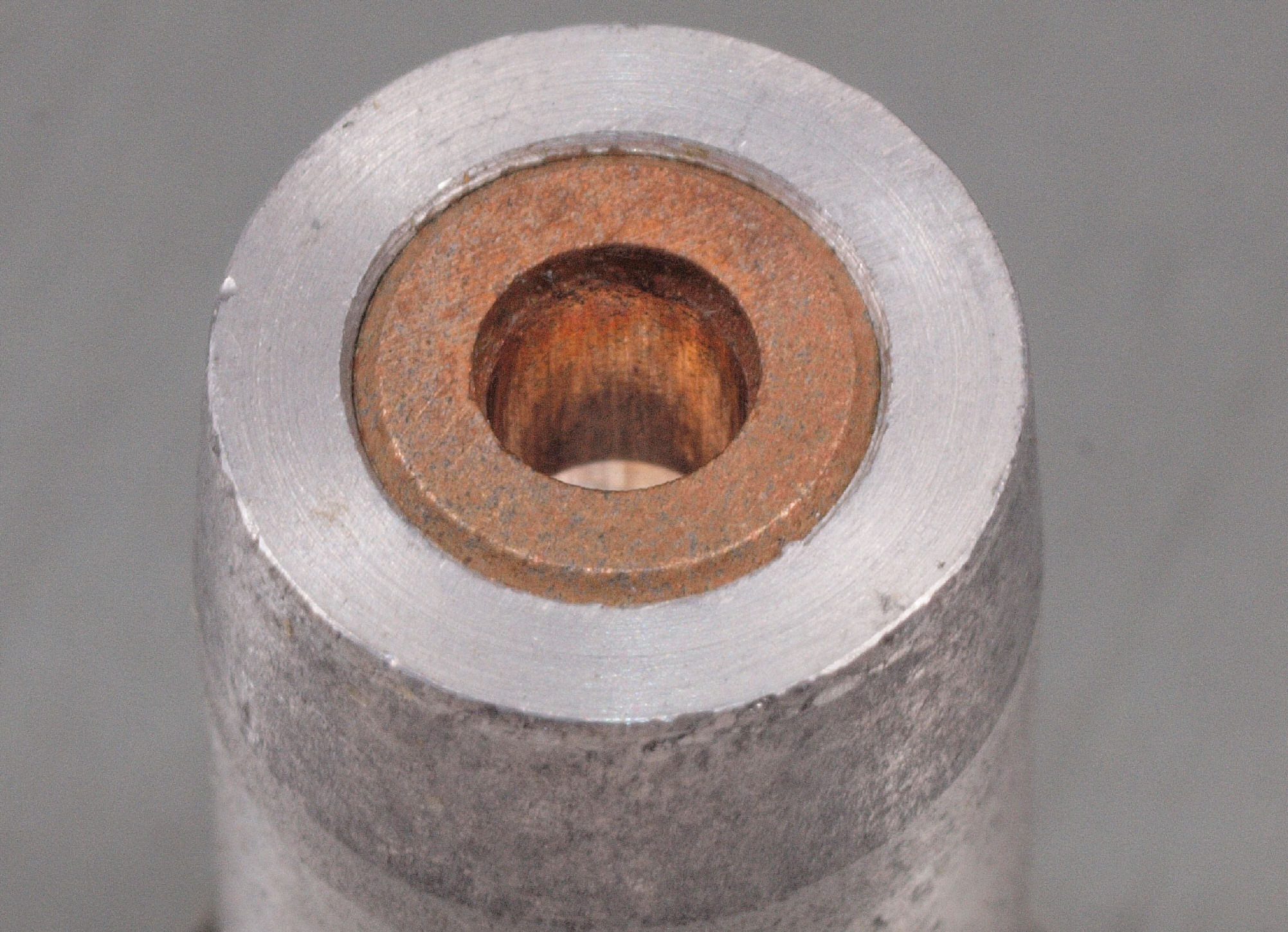 C58. 修理中 モーター回転子(アマチュア)軸、拡大。 オイル切れで少しキズ有り。