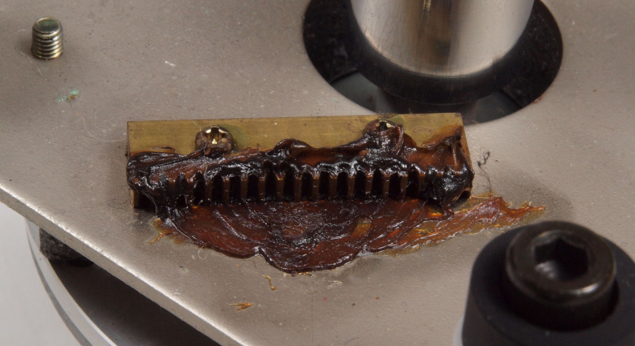 | C83. 修理後 モーター移動用ラック歯車。新しいグリスを塗布。 | ||||||||||||||||||||