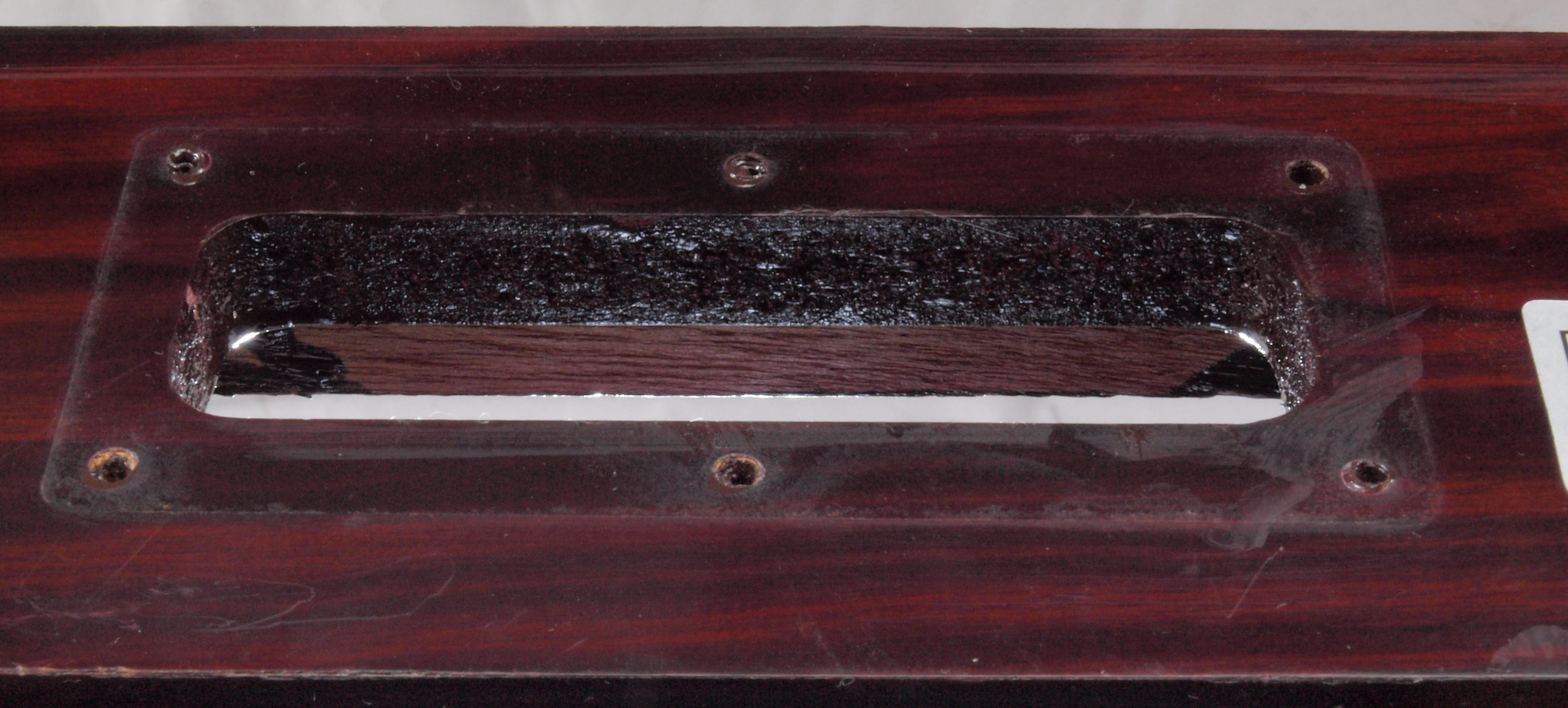 W24. 修理後 操作部取付穴、反対側。 圧縮材にボンドを染みこませる、更にペンキを塗る。