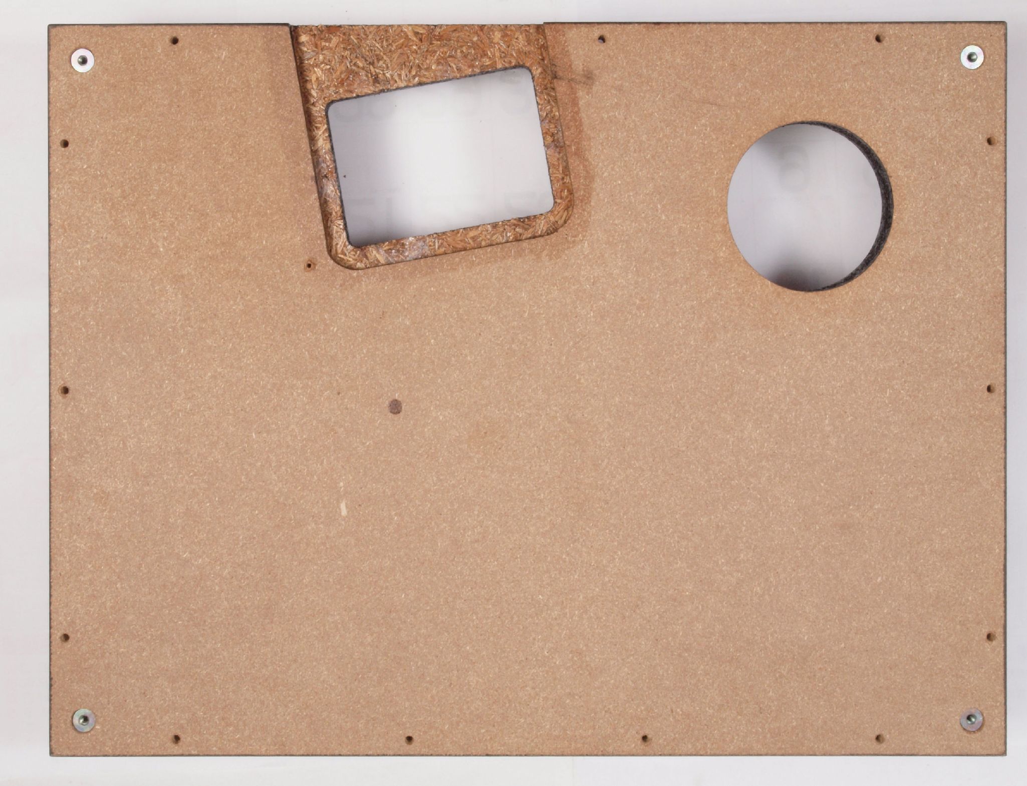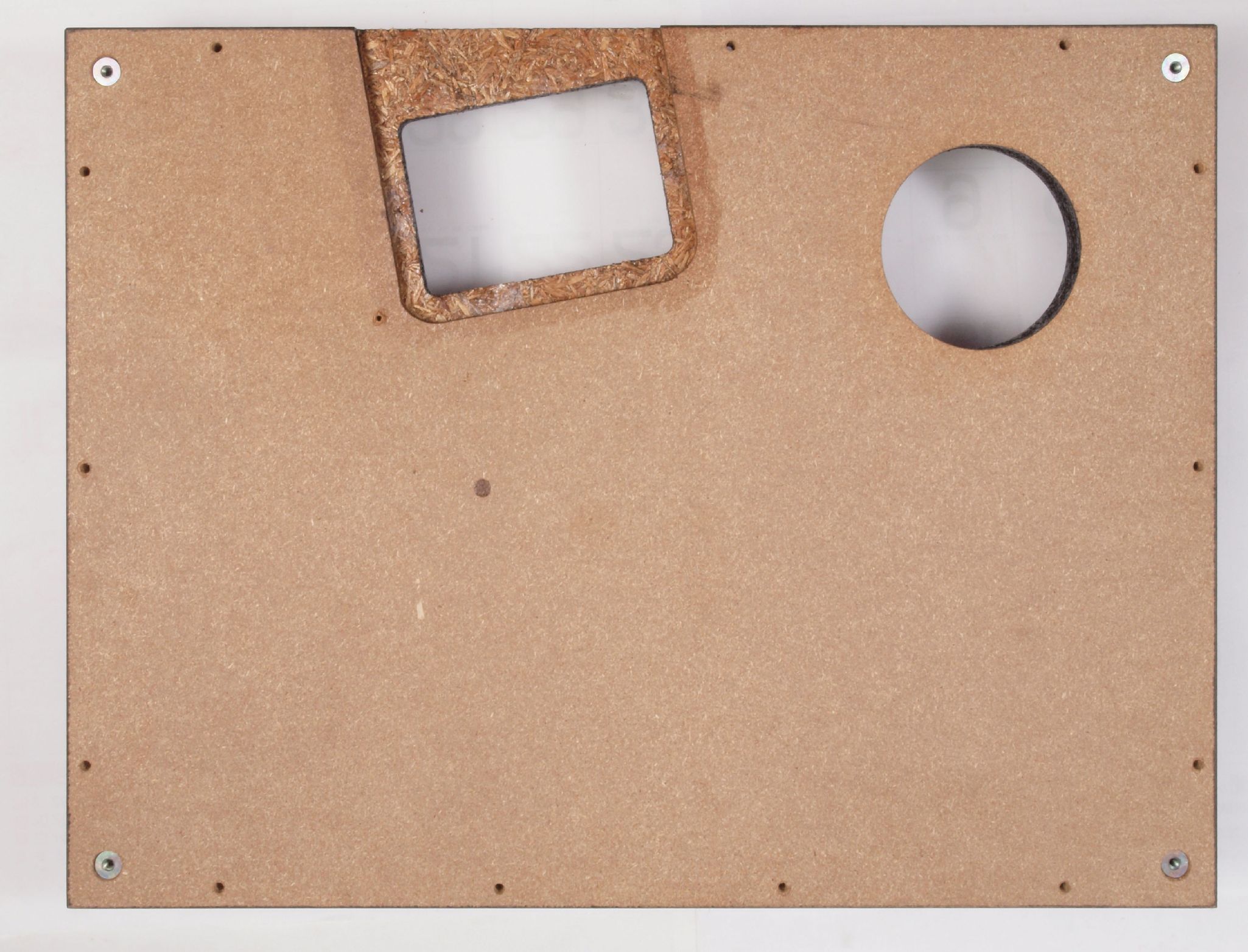 | W35. 修理中 本体木枠下後右。 圧縮材にボンドを染みこませる、ネジ穴も塗る。 | ||||||||||||||||||||||||