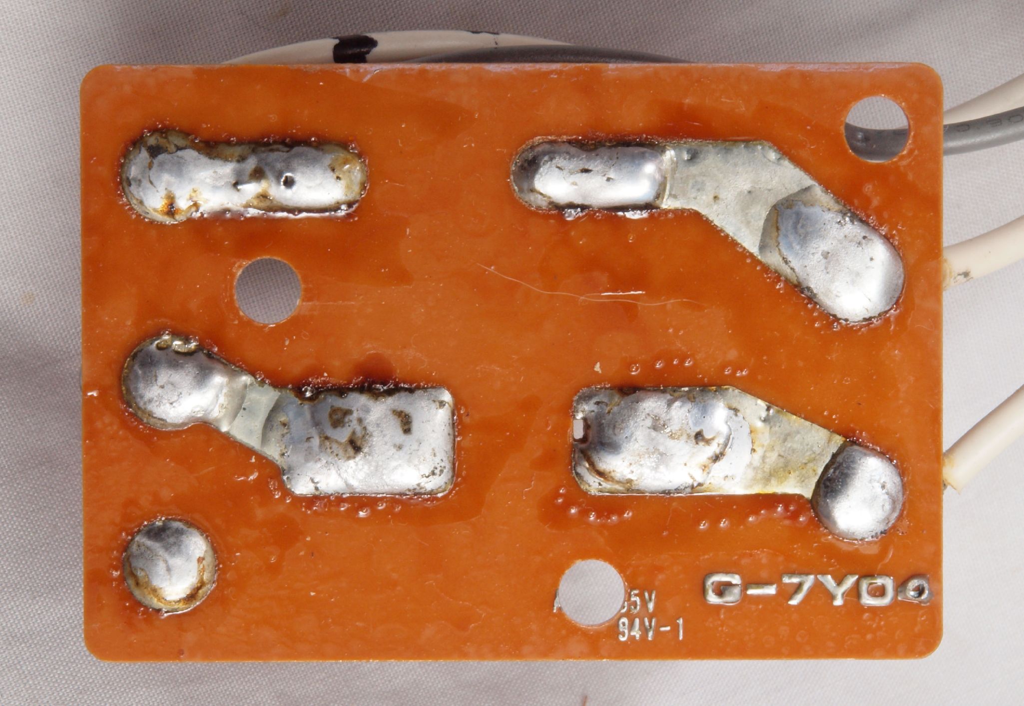 | C43. 修理(半田補正)後 フューズ基板裏。 半田を全部やり直す。 | ||||||||||||||||||||||||