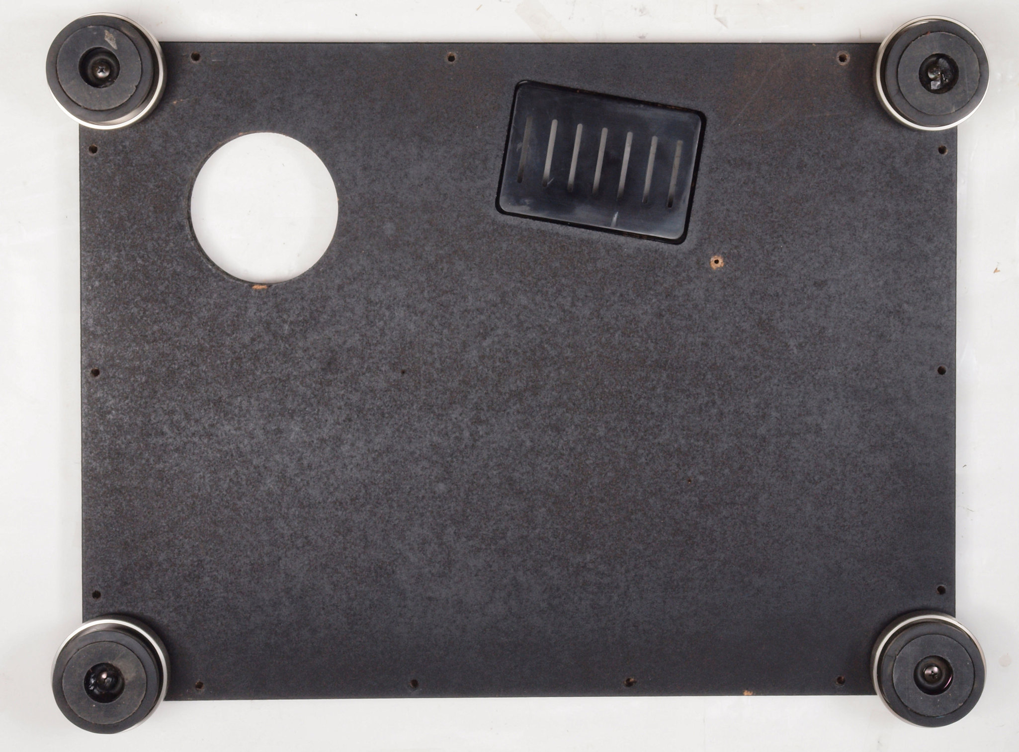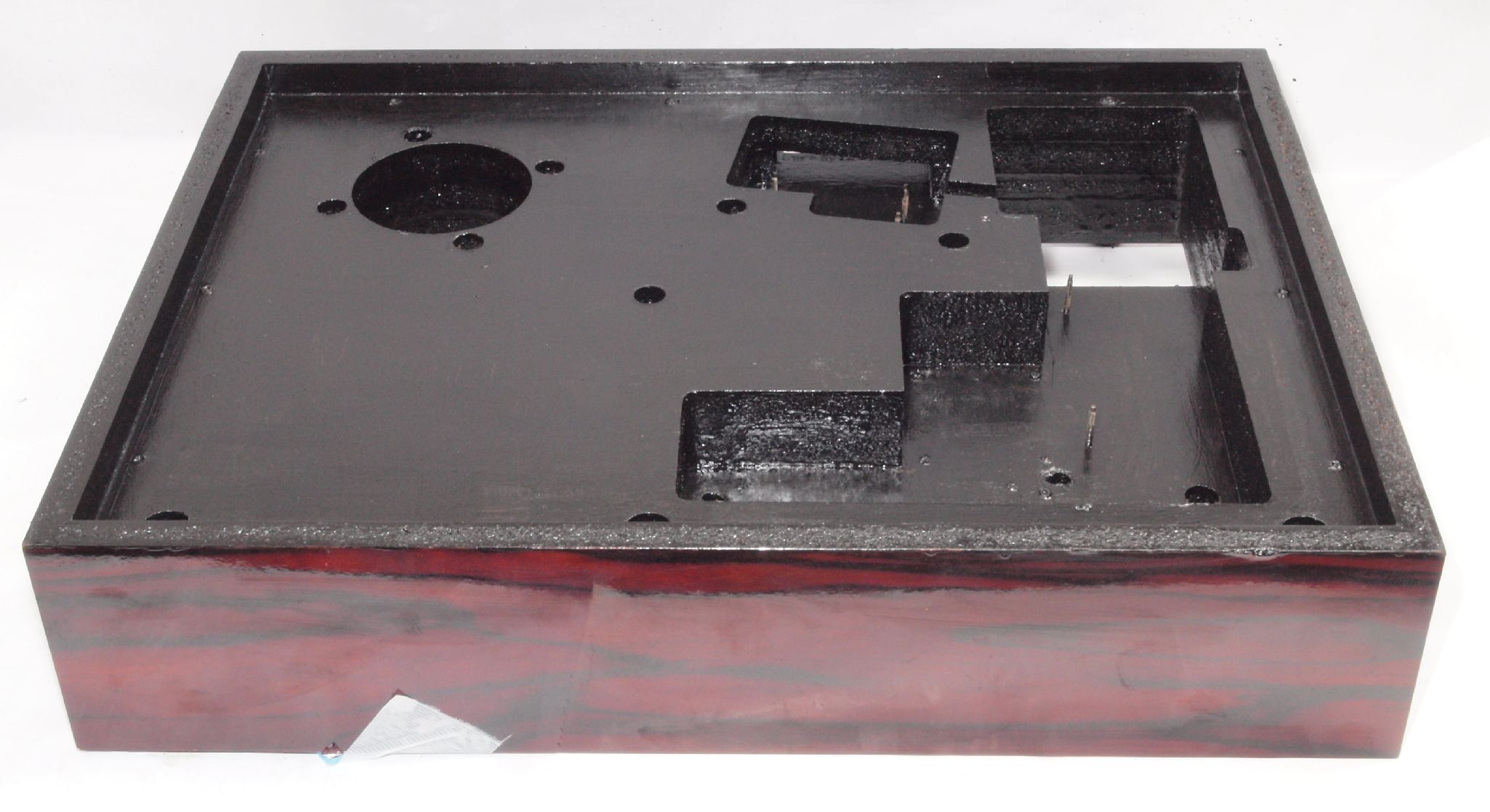 | W. 下蓋及び本体木部 修理状況。 画像をクリックすると、大きく(横幅2050ドット)表示されます。 W1. 修理前 モーター、基板、アーム架台を取り本体上から。 |