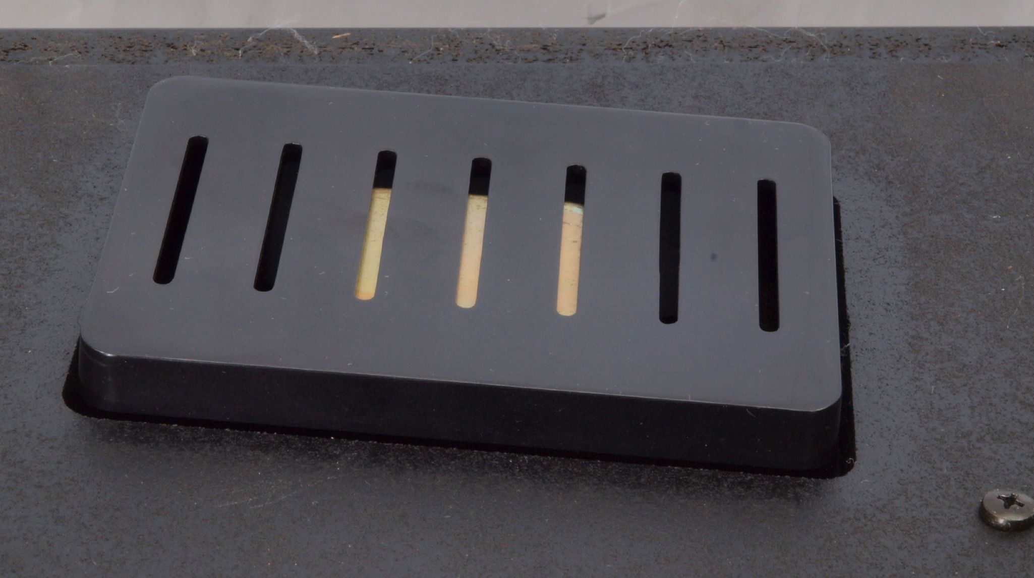 W7C. 修理後 下蓋のトランスカバー取り付穴、反対側。 乾燥後さらにペンキを塗る。