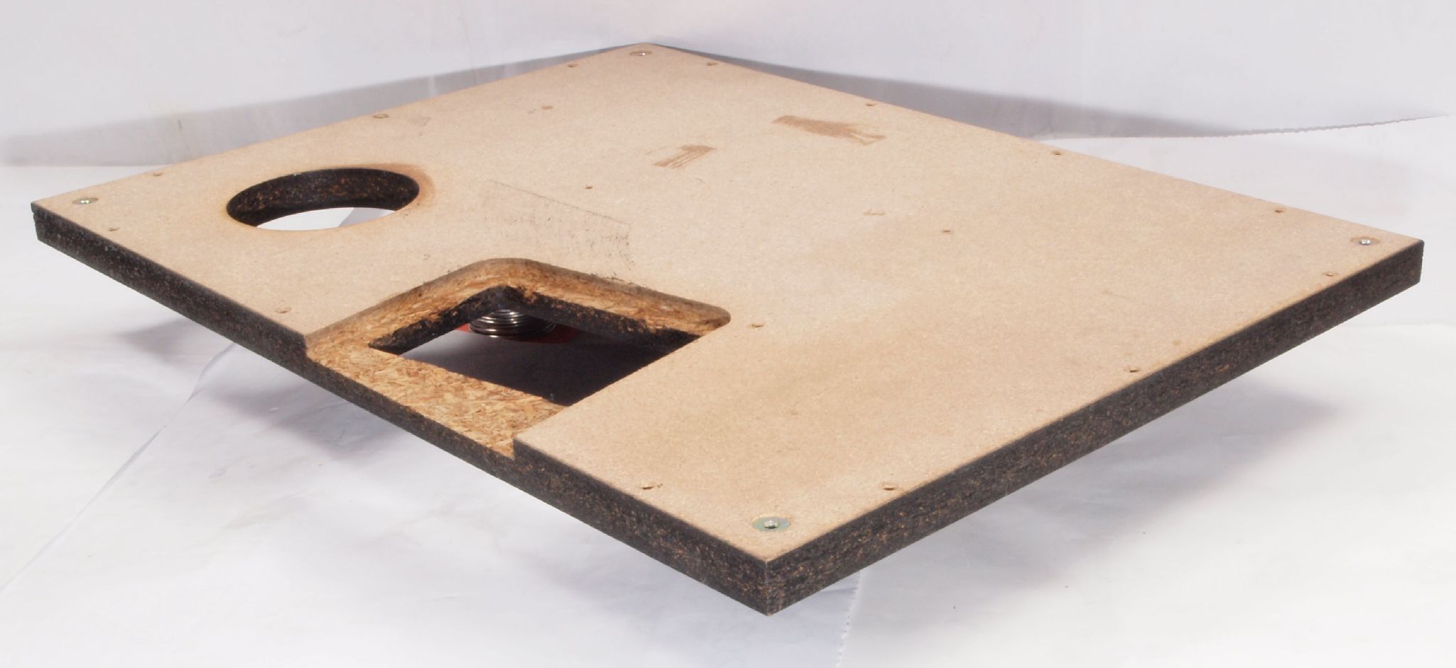 W42. 修理中 本体木枠下前。 圧縮材にボンドを染みこませる、ネジ穴も塗る。