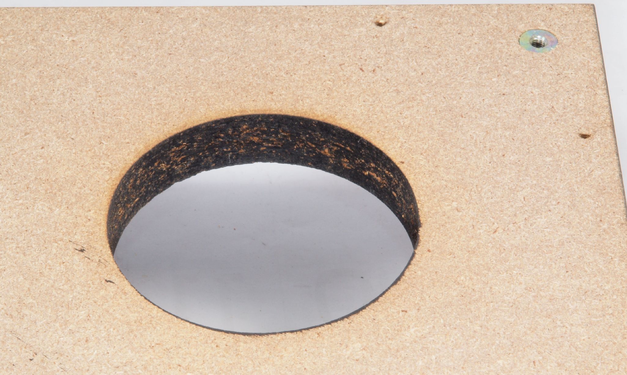 W25. 修理中 操作部取付穴、反対側。 圧縮材にボンドを染みこませる。