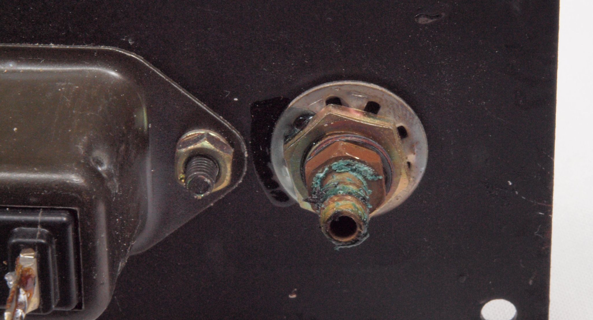 W54. 修理前 電源ソケット、端子板取付け穴、反対側。