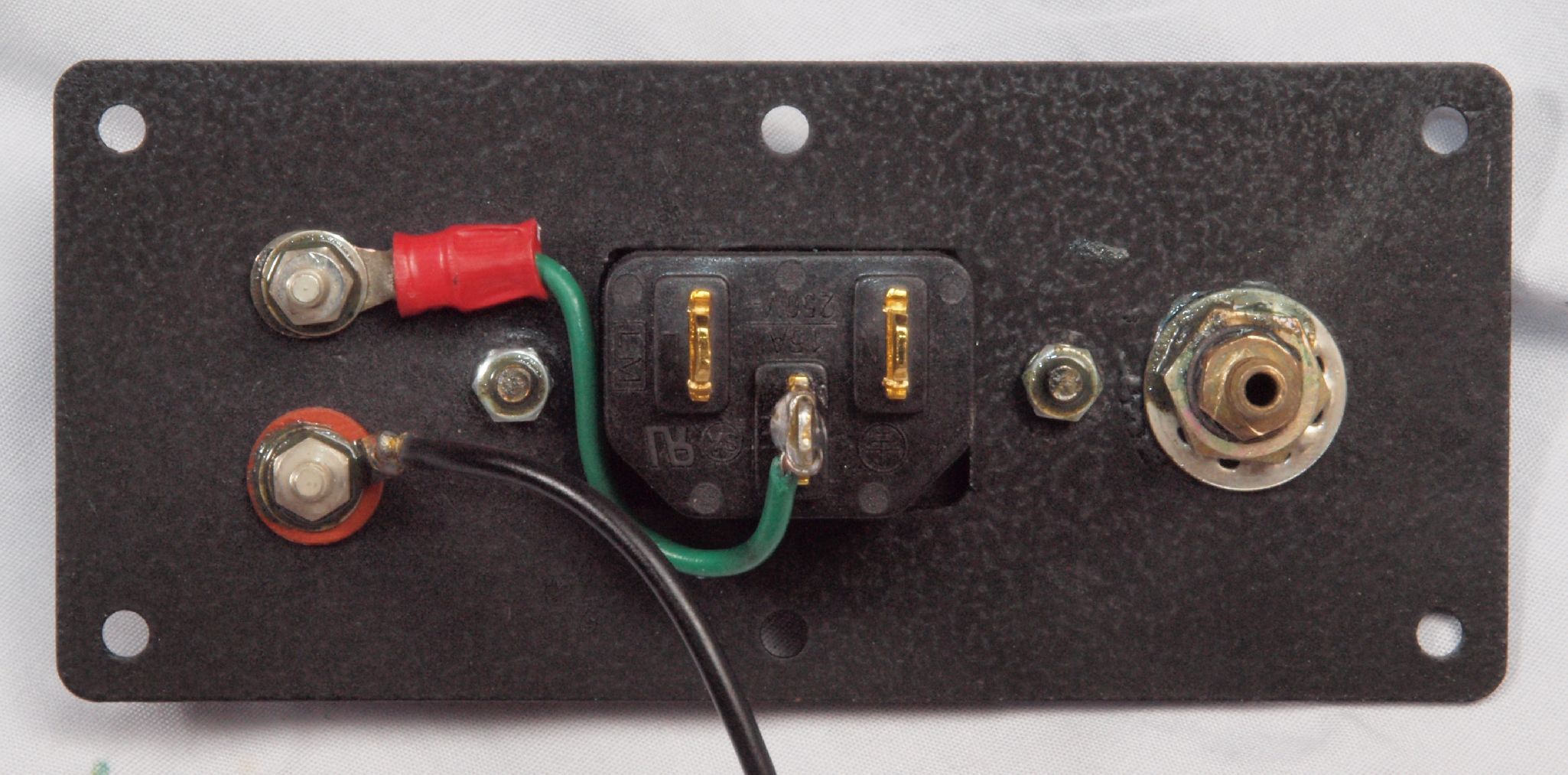 W56. 修理後 電源ソケット、端子板取付け穴、反対側。 乾燥後さらにペンキを塗る。