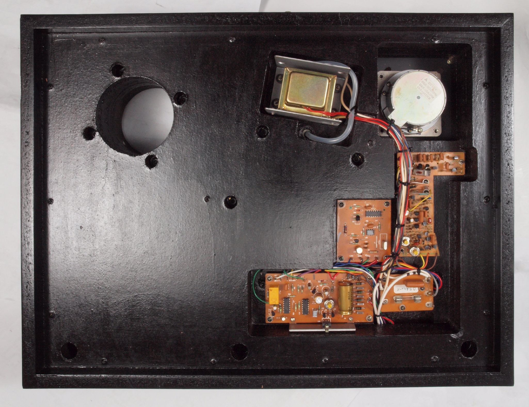 W1. 修理前  モーター、基板、アーム架台を取り本体上から。