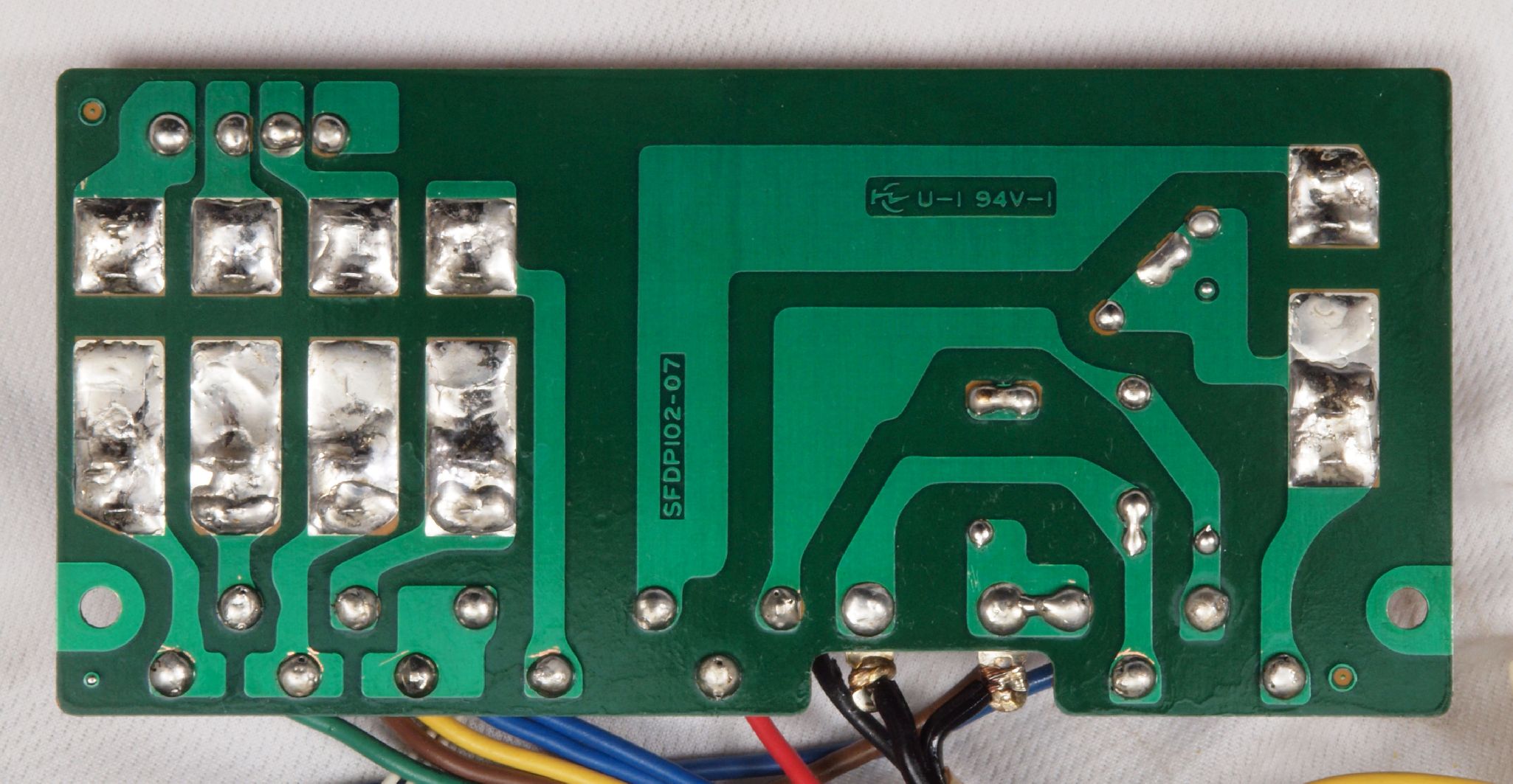 C23. 修理(半田補正)後 電源ヒューズ基板裏。全ハンダをやり直す。
