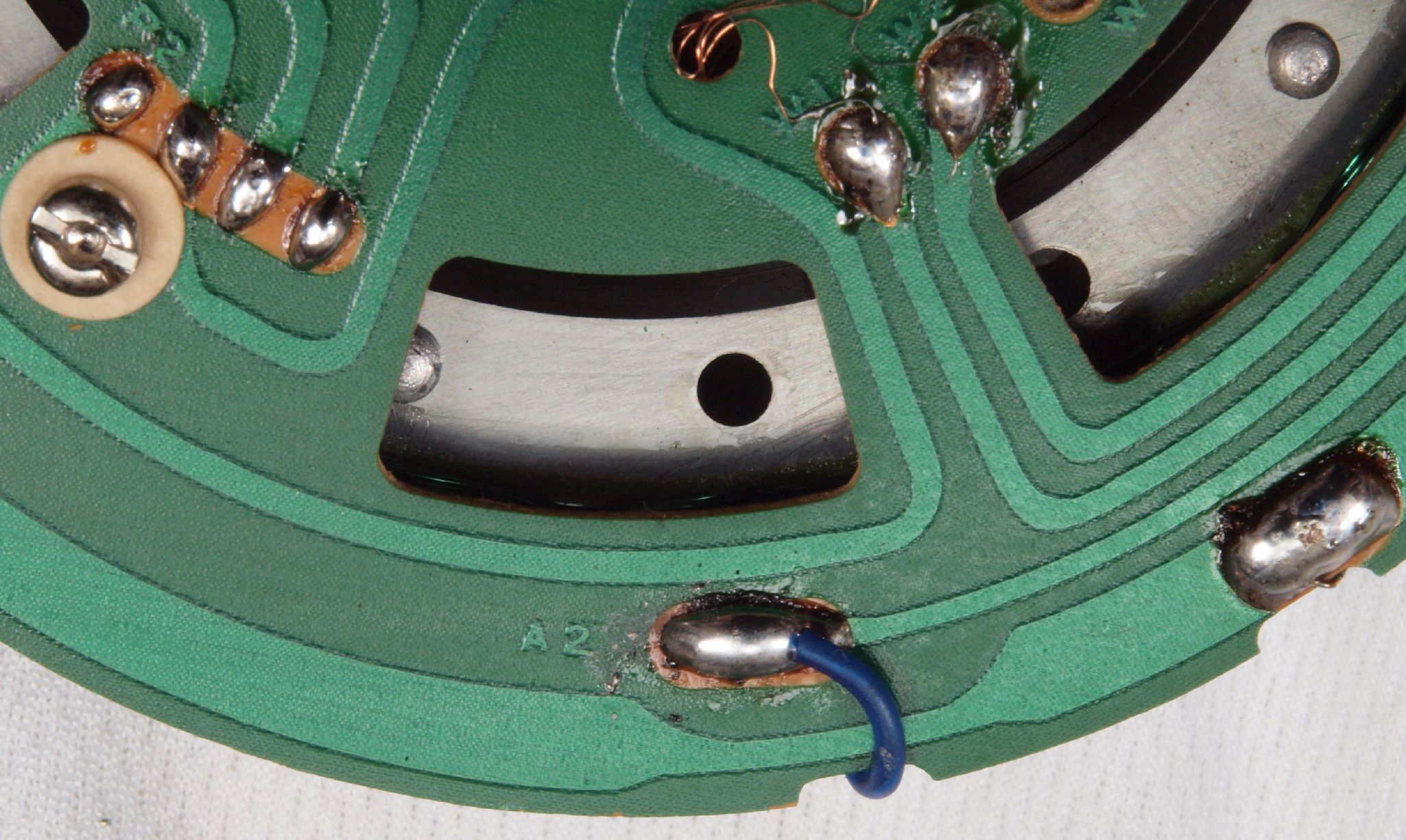 M65. 修理後 アマチュアコイルの引き出し線A2、拡大。