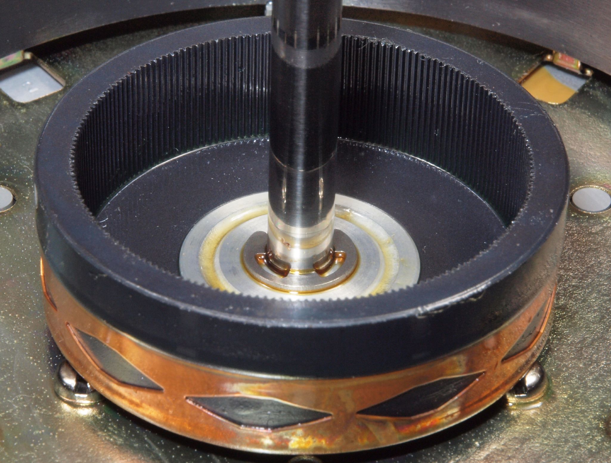 M42. 修理後 モータ回転子裏。 今後の為、錆止めを軽く塗布する。
