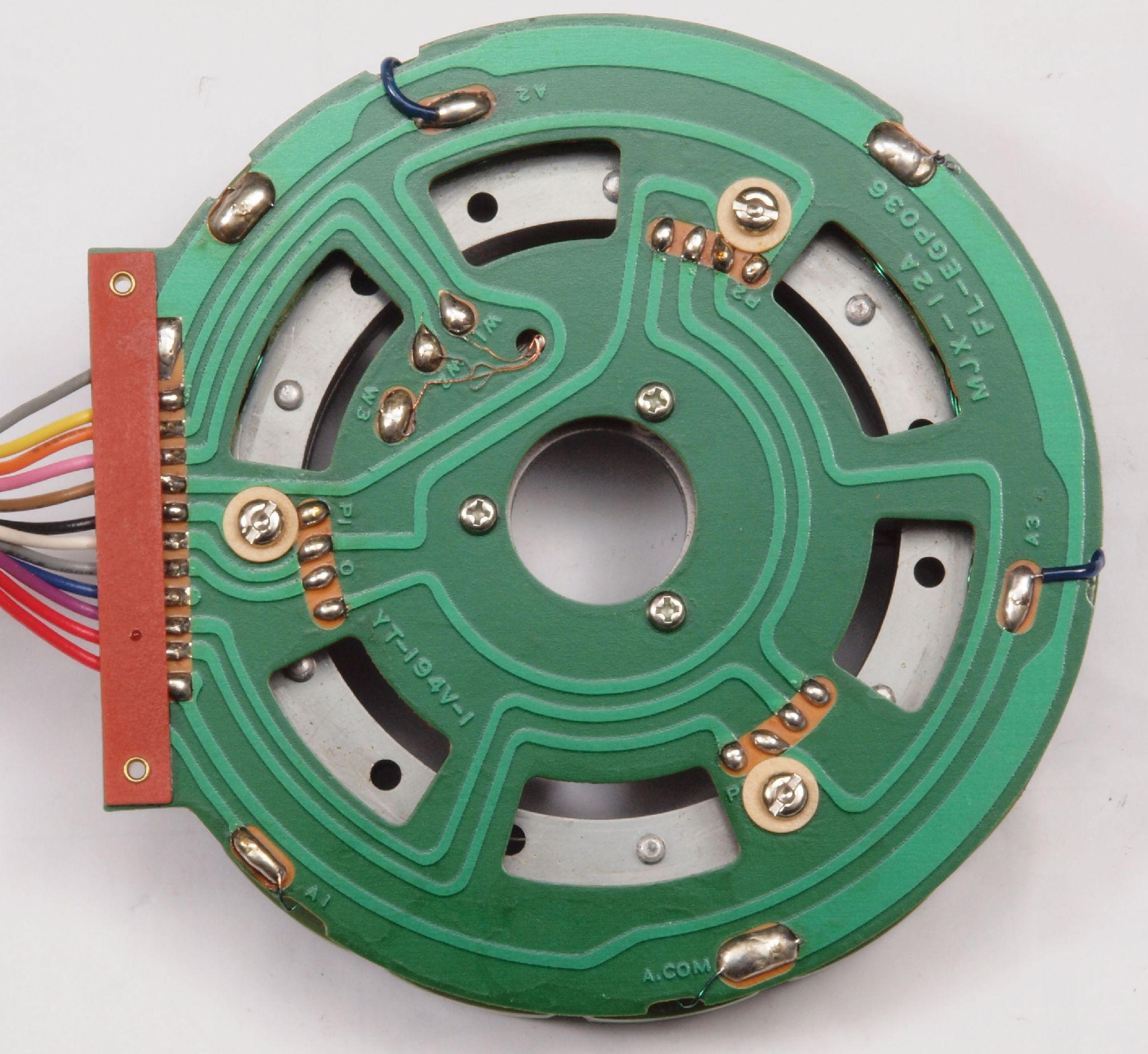M63. 完成固定子巻線基板裏。 余分なフラックスを落として洗浄し、コート液を塗る。