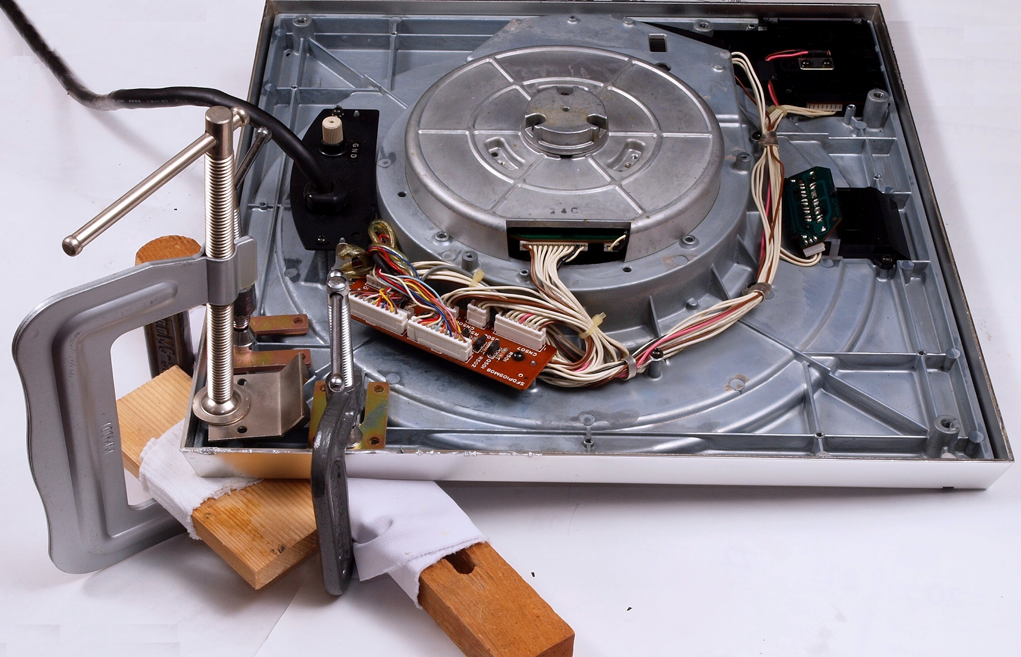 | D. 本体(タンテーブル)修理状況 D01. 修理前 上から見る。 |