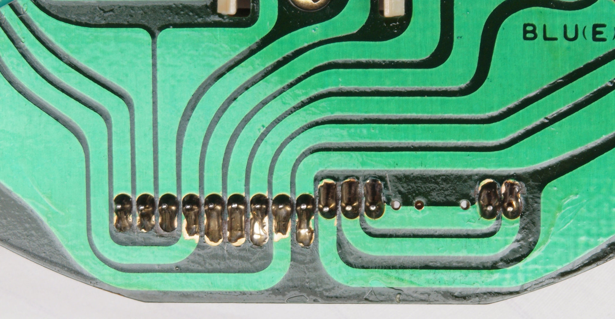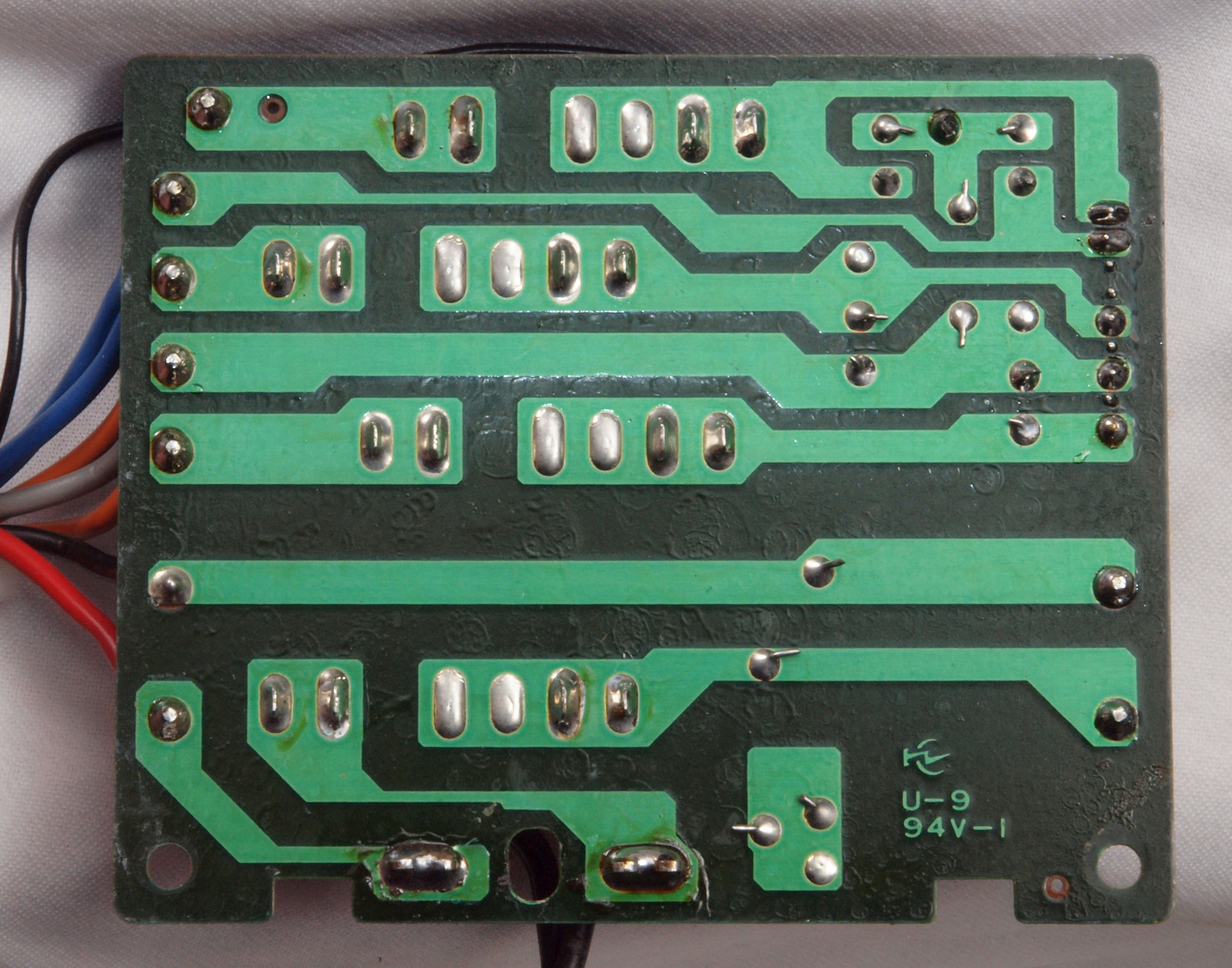 | D35. 完成ターンテーブル操作基板基板裏。 余分なフラックスを落として、コート液を塗る。 | ||||||||||||||||||||||||||||||||||||||||