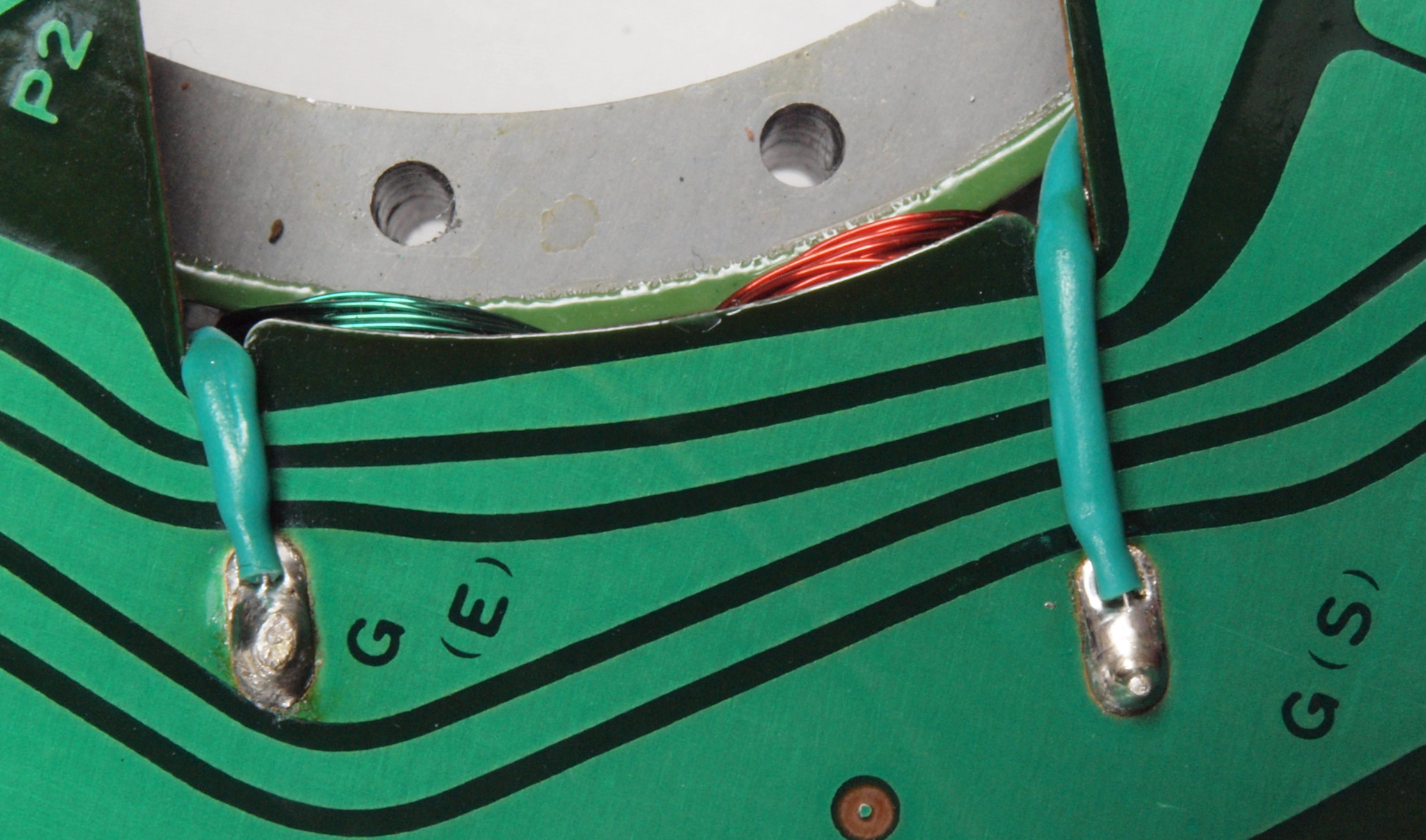 | M51. 修理中、 アマチュア(回転子)基盤裏巻線半田、引き出し線が絶縁していない!(GREEN巻線) | ||||||||||||||||||||||||||||||||||||||||