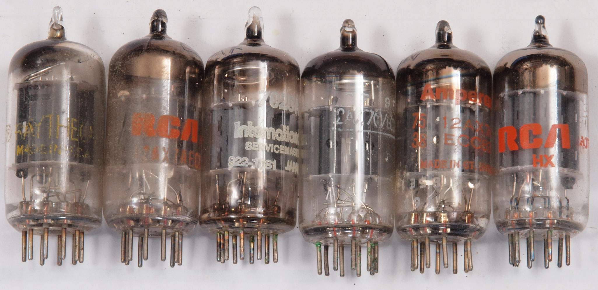 購入真空管「12AX7(ECC83)」。 左から1本目.2本目...5本目.6本目、12AU7。