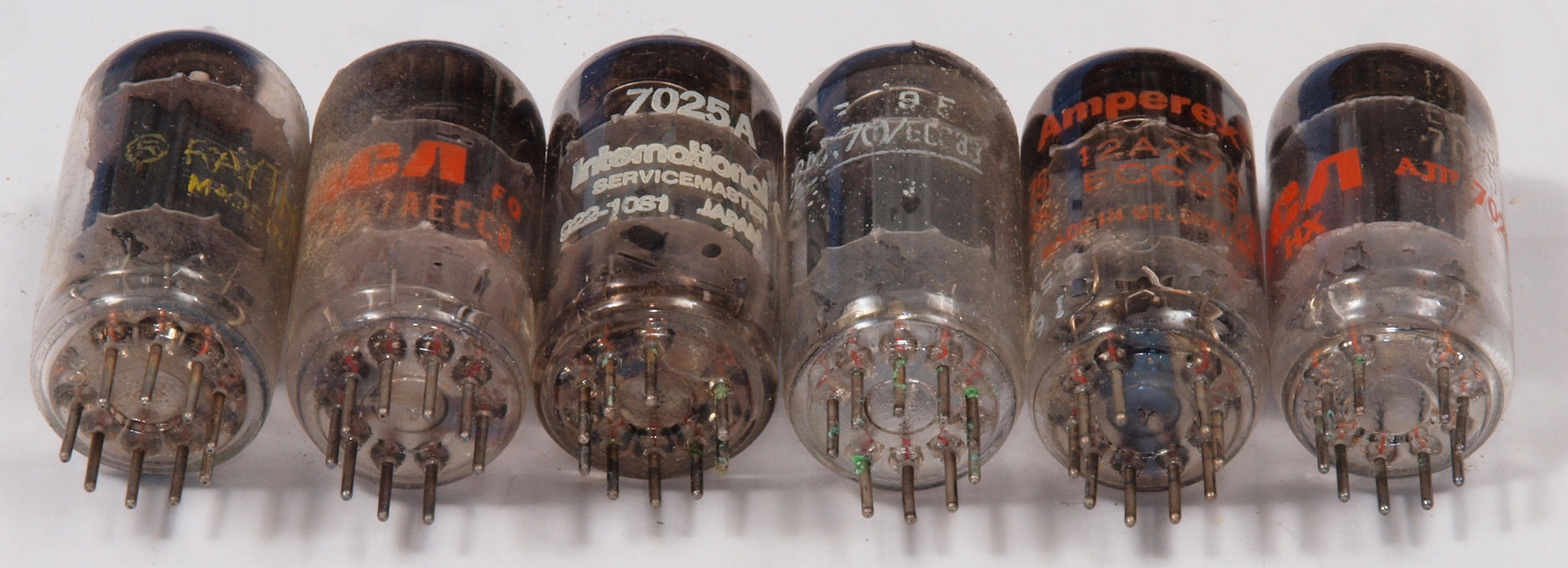真空管 12AX7(ECC83)。 左から1本目.2本目...7本目。