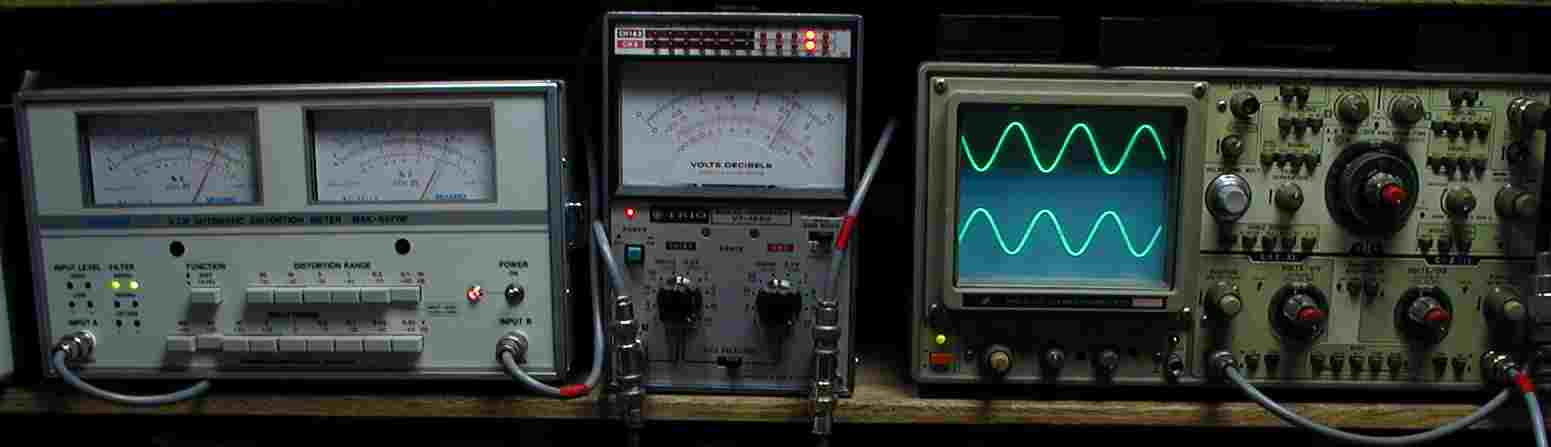 | 4B.電解コンデンサーをオーディオ用に交換 修理の様子はこちら 出力/歪み率測定・調整 R側SP出力=31V=120W出力 0.04%歪み AUX端子400HZ入力 |