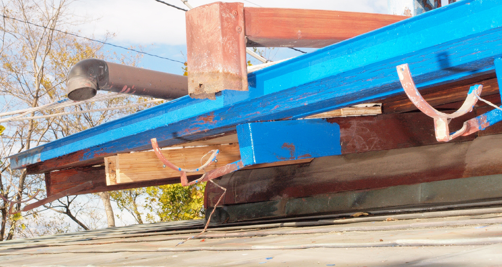 | 55. 修理中 1F南側軒天西端、1回目の塗装終了。 |