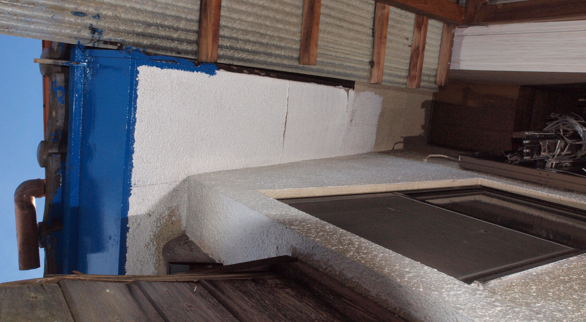 | 13. 修理中 1F西側 軒天。水性アクリルを塗る。 |