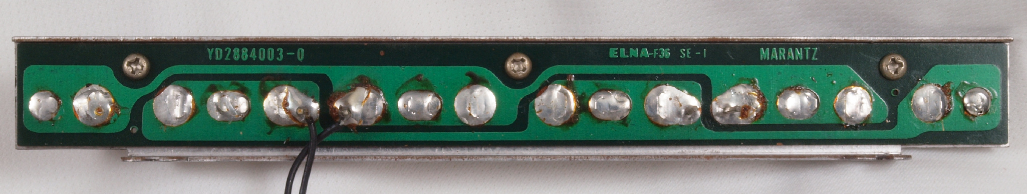 | CB3. 修理(半田補正)後 パネル照明基板裏。 半田を全部やり直す。 | ||||||||||||||||||||||||||||||||||||||||||||||||||||||||||||||||||
