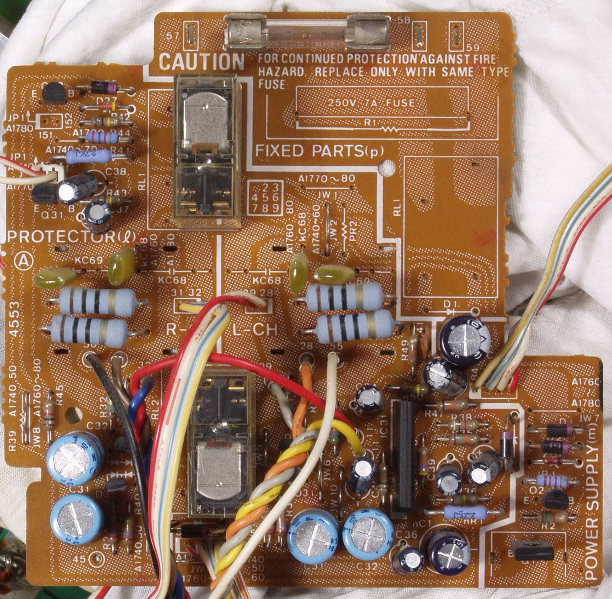 | C−4A−1. 修理中 電源基板 ダイオードは交換、フラックスで錆び止め |
