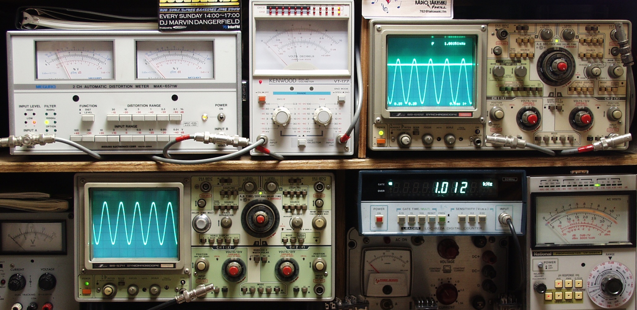 下左オーディオ発振器より400HZ・1KHZの信号を出す(歪み率=約0.003%)