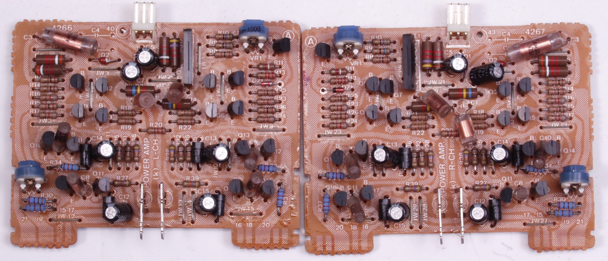 A13. 点検中 メインAMP基板のRLプロテクト基板の電解コンデンサーが異なる