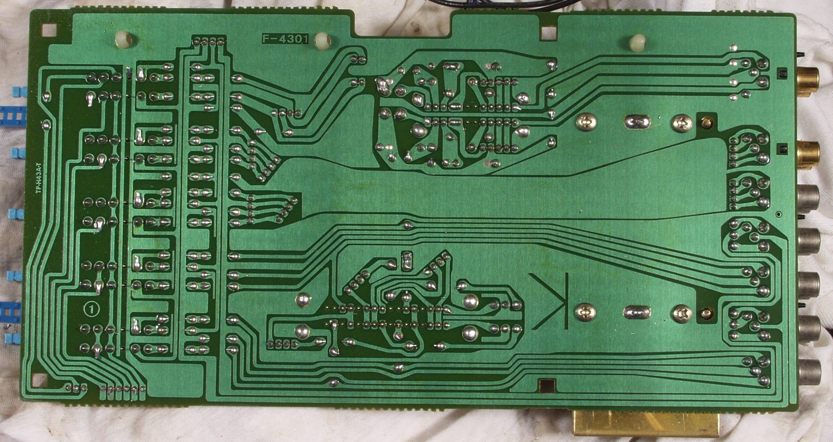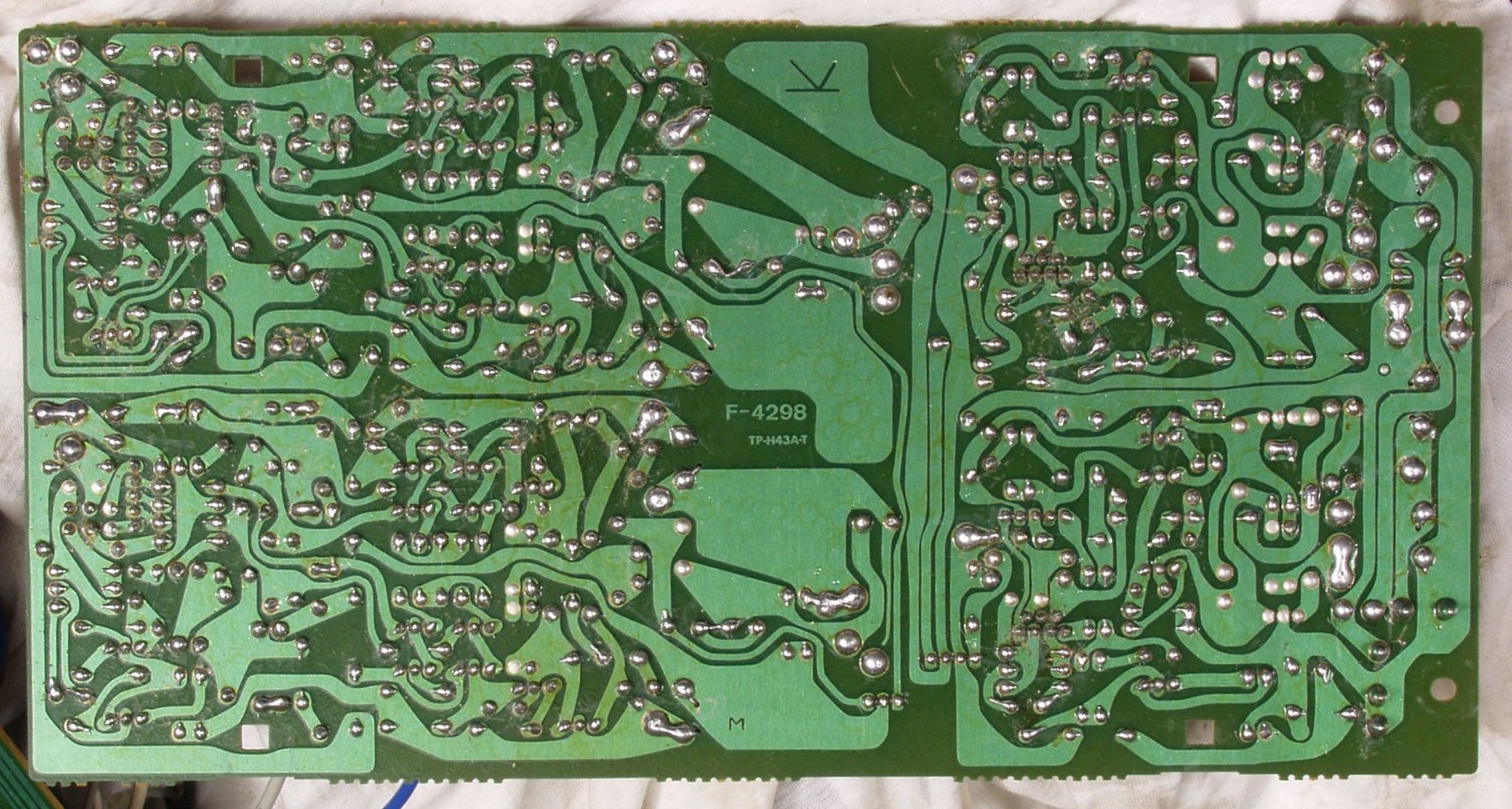 | C−4D. 修理(半田補正)後 メイン・ドライブAMP基板裏 差し込み基板は未接続 | ||||||||||||||||||||||||||||||||||||||||||||||||||||||