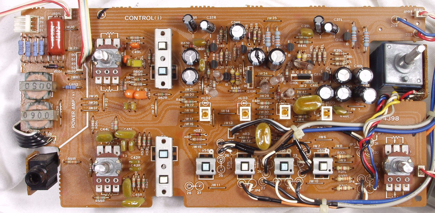 | C−7B. 修理後 EQ基板 初段FET(電界効果トランジスター)2個、半固定VR4個、電解コンデンサー20個(BPに交換したので2個減)交換 | ||||||||||||||||||||||||||||||||||||||||||||||||||||||