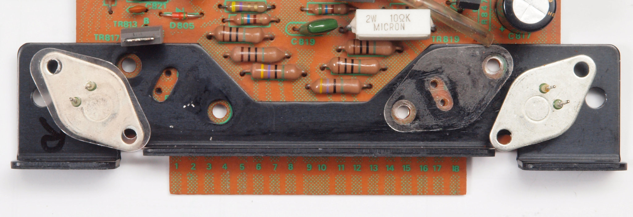 | C31. 修理前 L側終段基板。 TR(トランジスター)が2個交換されている。 | ||||||||||||||||||||||||||||||||||||||||||
