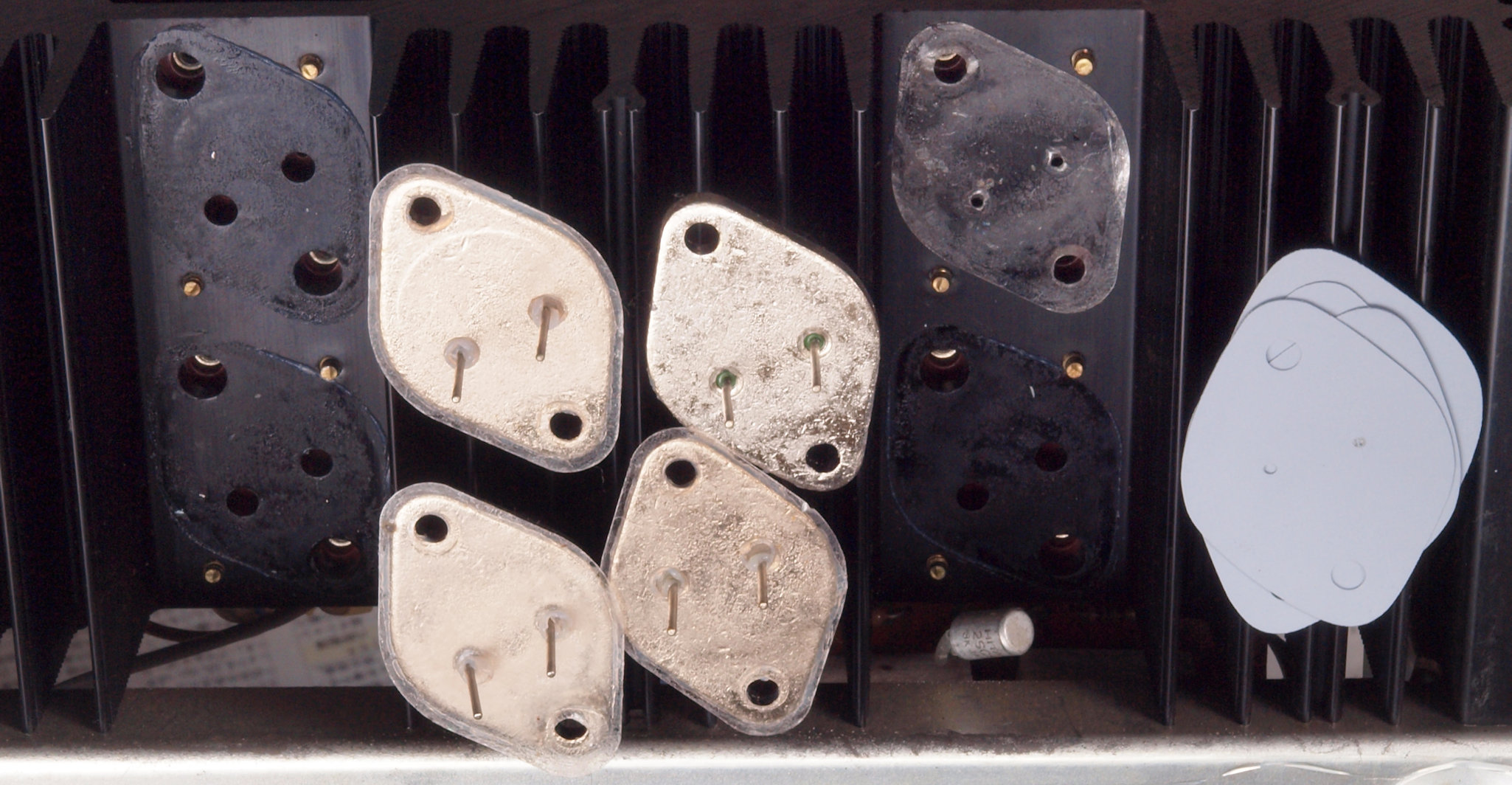 | C12. 修理中 R側 終段トランジスター。 熱でシリコングリスが流れ出し殆ど無い、テフロンシートに交換する。 | ||||||||||||||||||||||||||||||||||||||||||