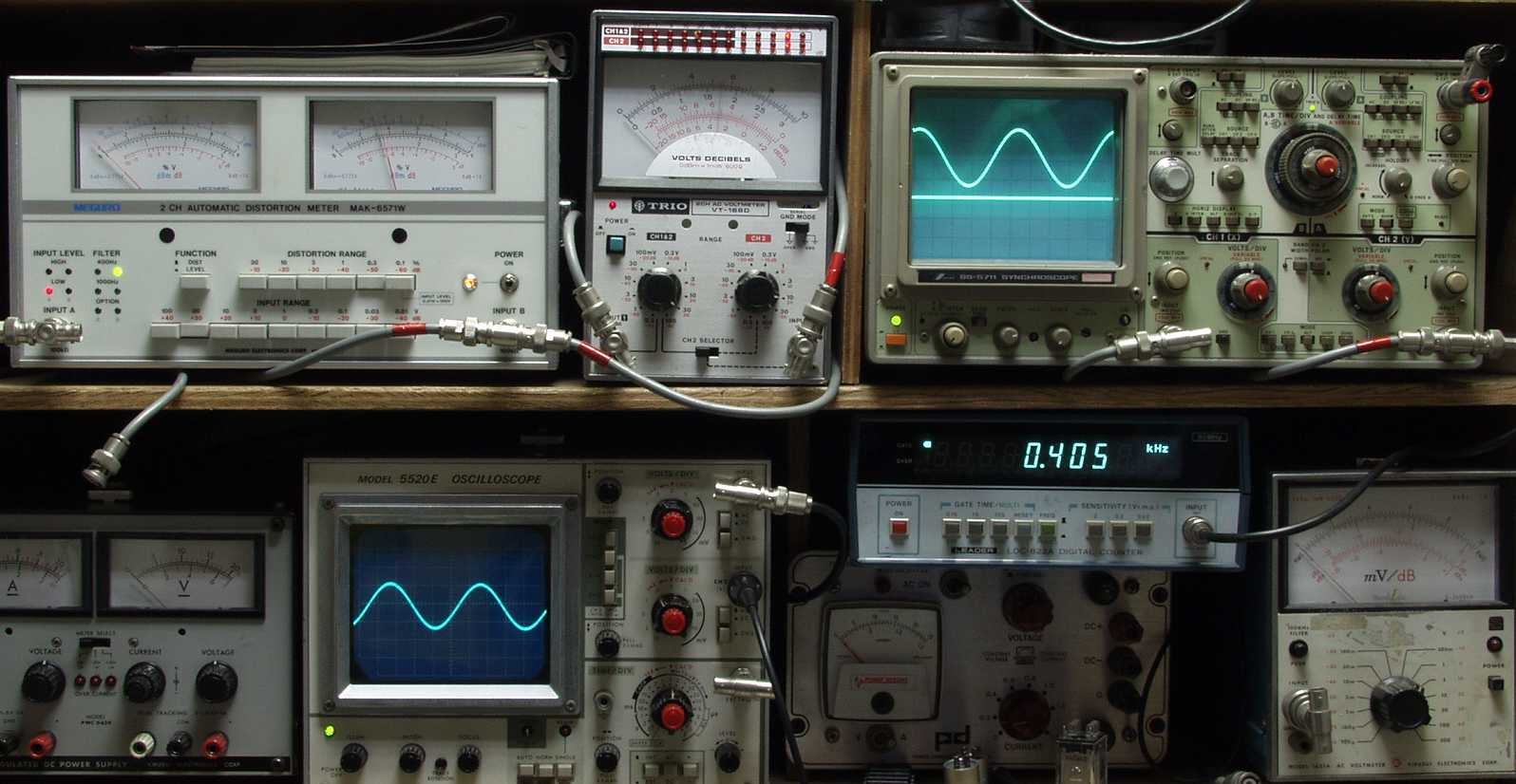 上左オーディオ発振器より400HZ・1KHZの信号を出す(歪み率=約0.003%)