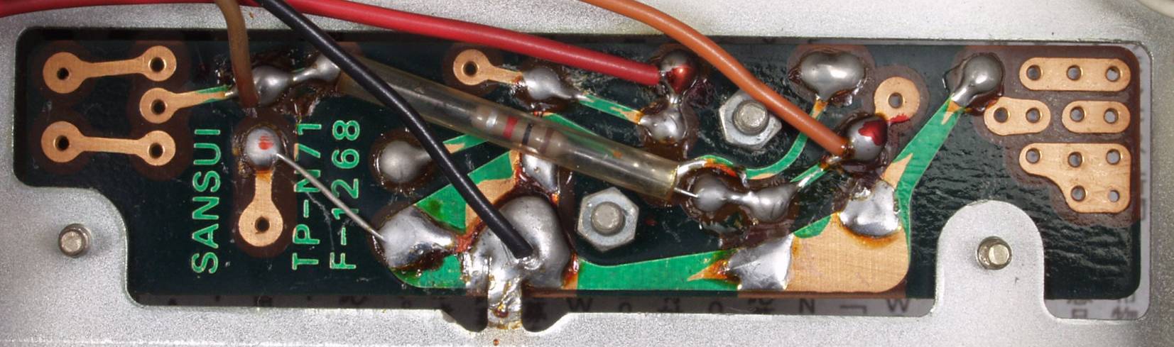 | C−AB. 修理後 少し詰めたACコード、ハンダはやり直す |