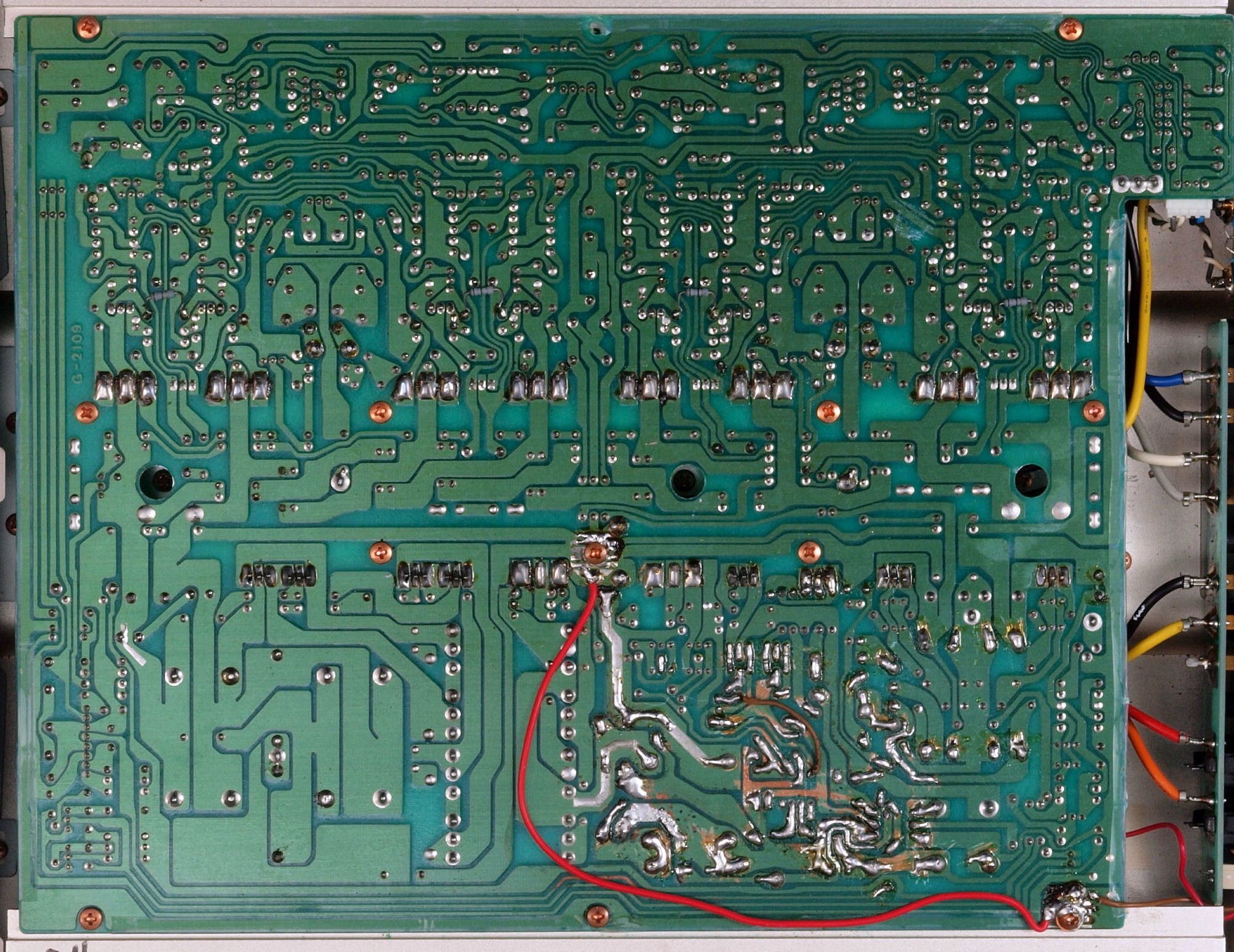C35. 完成AMP基板裏  洗浄後防湿材を塗る。 3度塗りするので、クッキリ感が出ない。