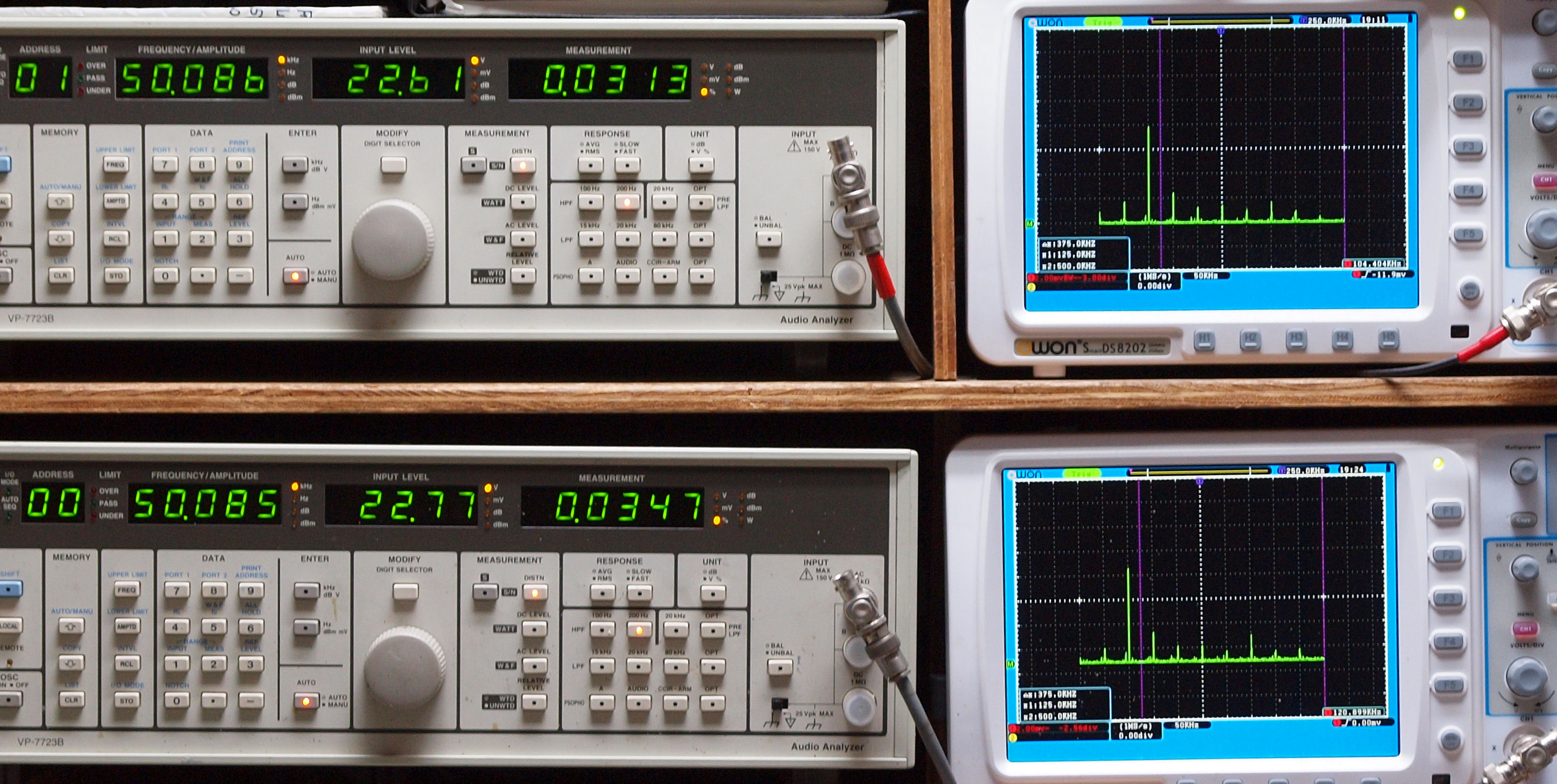 よって、ダイアル設定出力レベルより低くなります。測定機器の仕様や整備の様子はこちら、「VP−7723B」「VP−7201A」。 FFT画面の見方はこちら。