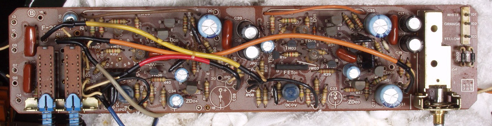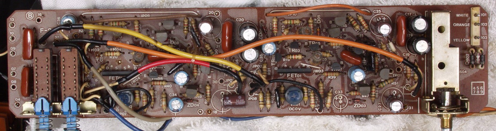 | C4B. 修理後 RL EQ−AMP基板 電解コンデンサー4個、複合FET(電界効果トランジスター)2個交換 | ||||||||||||||||||||||||||||||||||||||||||||||||||||||||||||||||||