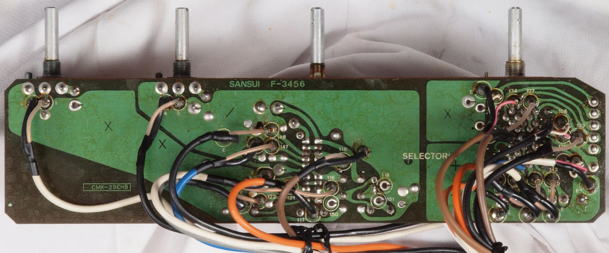 初段FET(電界効果トランジスター)、半固定VR2個、電解コンデンサー11個交換。フイルムコンデンサー2個追加。