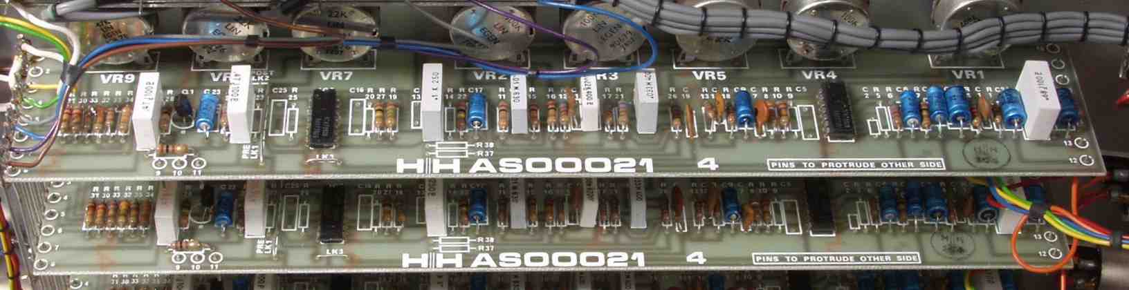 C−2A.修理前  入力AMP OP−AMP2個、電解コンデンサー8個交換 同じ物が8個有る