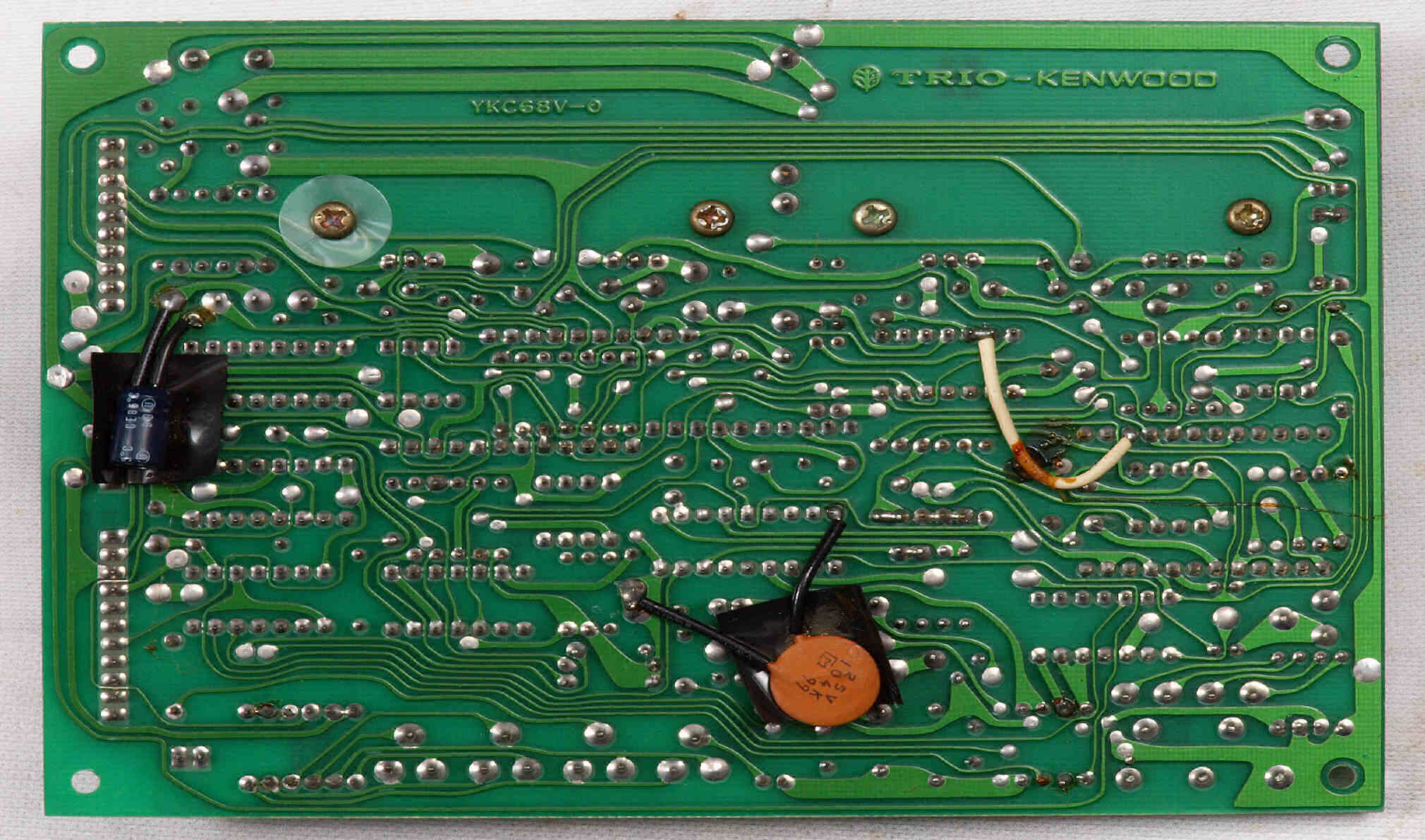 | C14. 修理(半田補正)後 電源定電圧基板裏。 フイルムコンデンサー2個追加。 | ||||||||||||||||||||||||||||||||||||||||||||||||||||||||||||||||||||||||