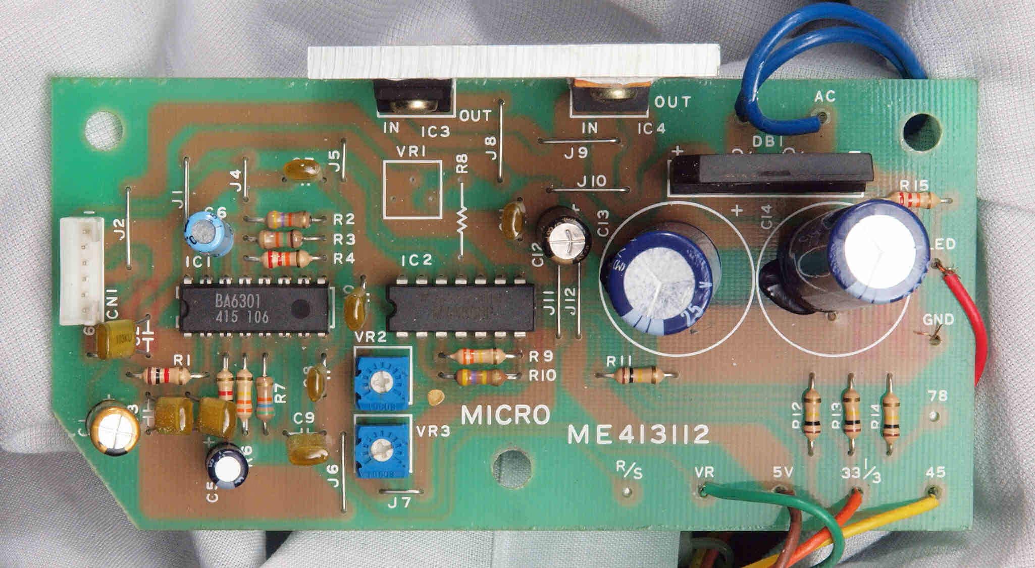 | C14 .修理後 モーター部コントロール基板。 IC−2個、定電圧IC2個、電解コンデンサー4個交換。 |