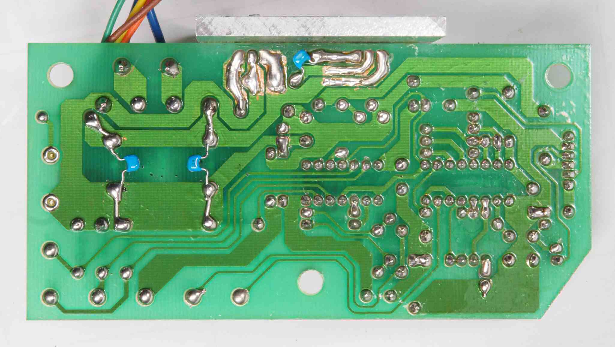 | C17. 修理(半田補正)後 モーター部コントロール基板裏。フイルムコンデンサー3個追加。 |